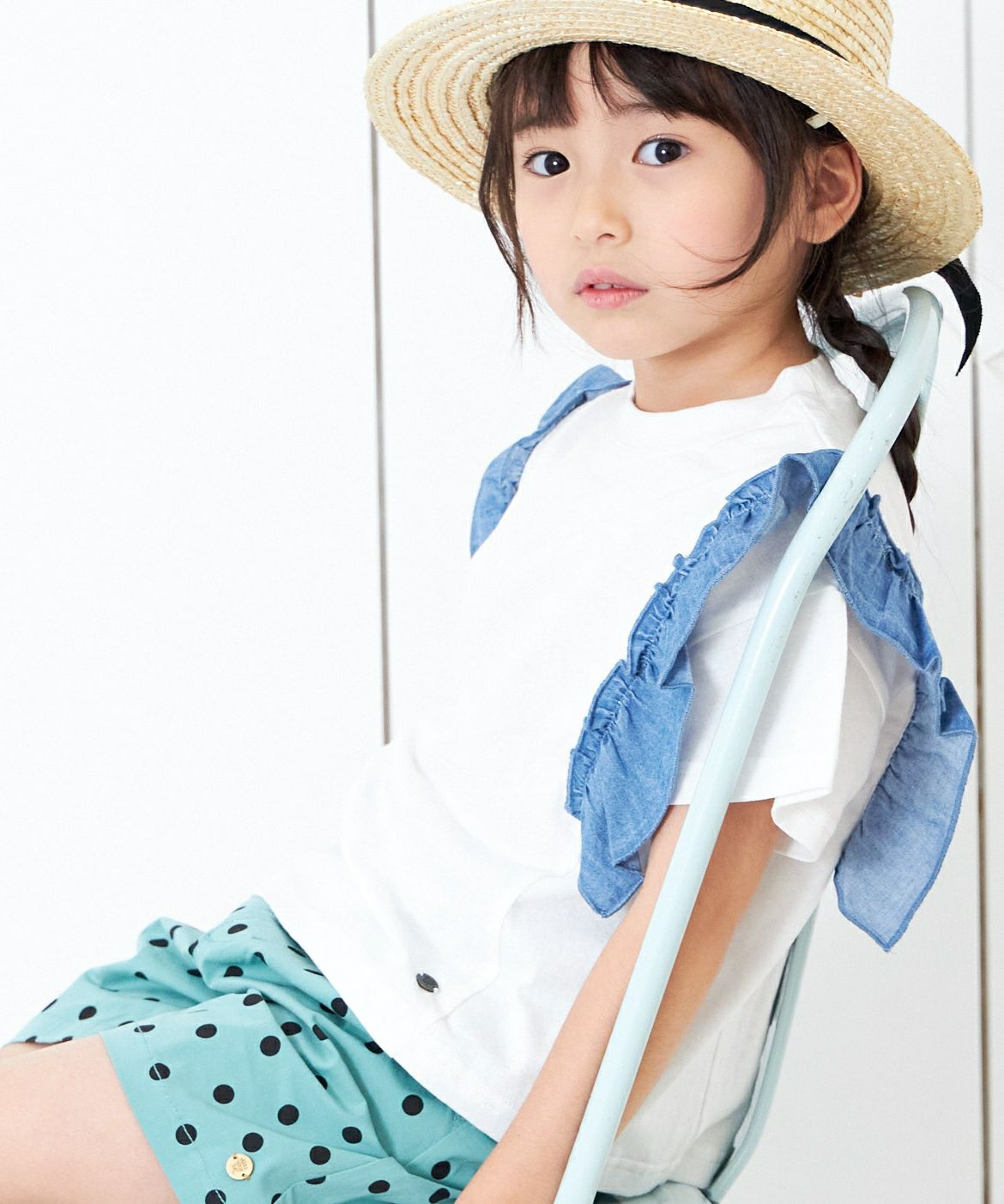 【セール】デニムフリル半袖Tシャツ■90~140cm