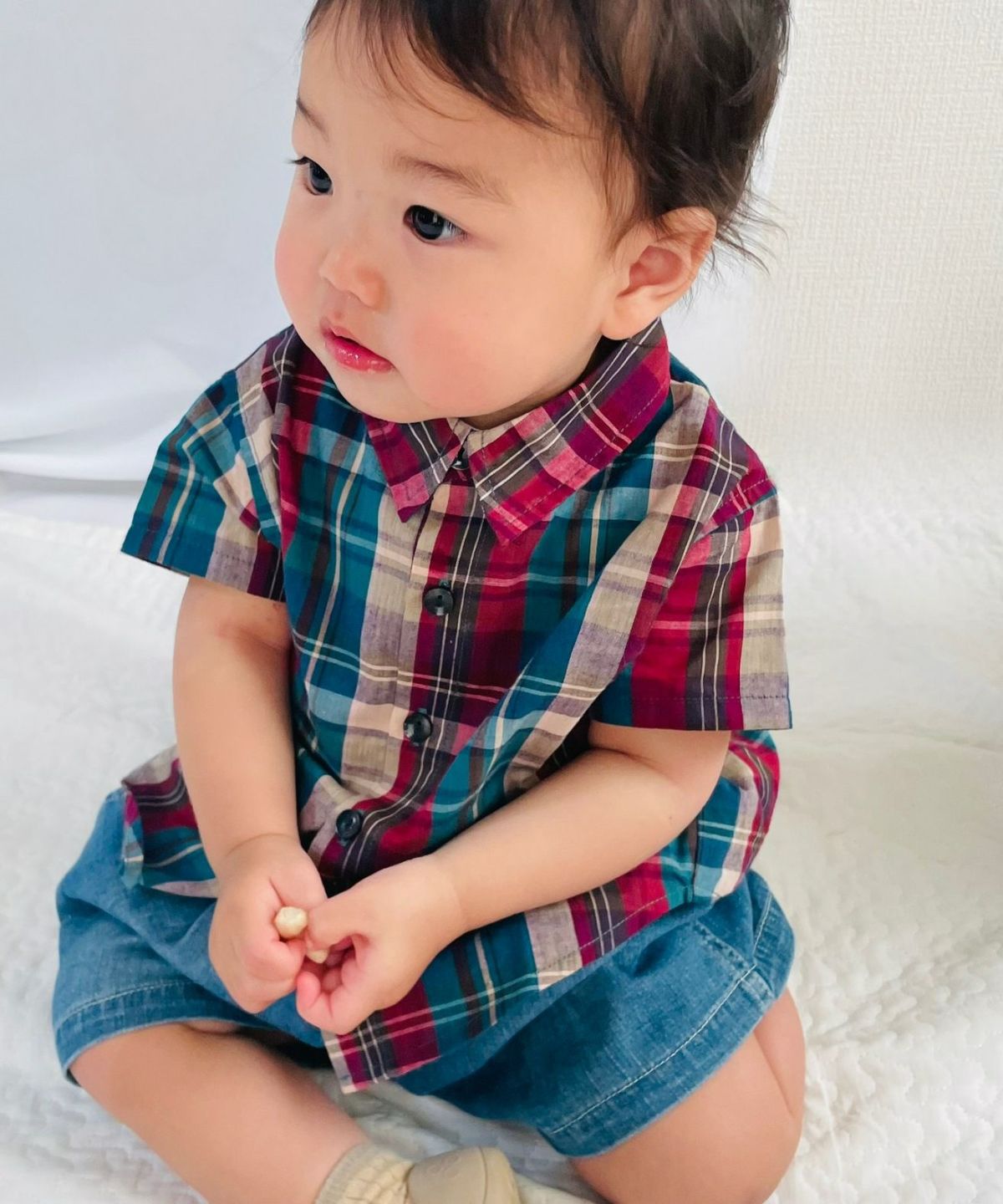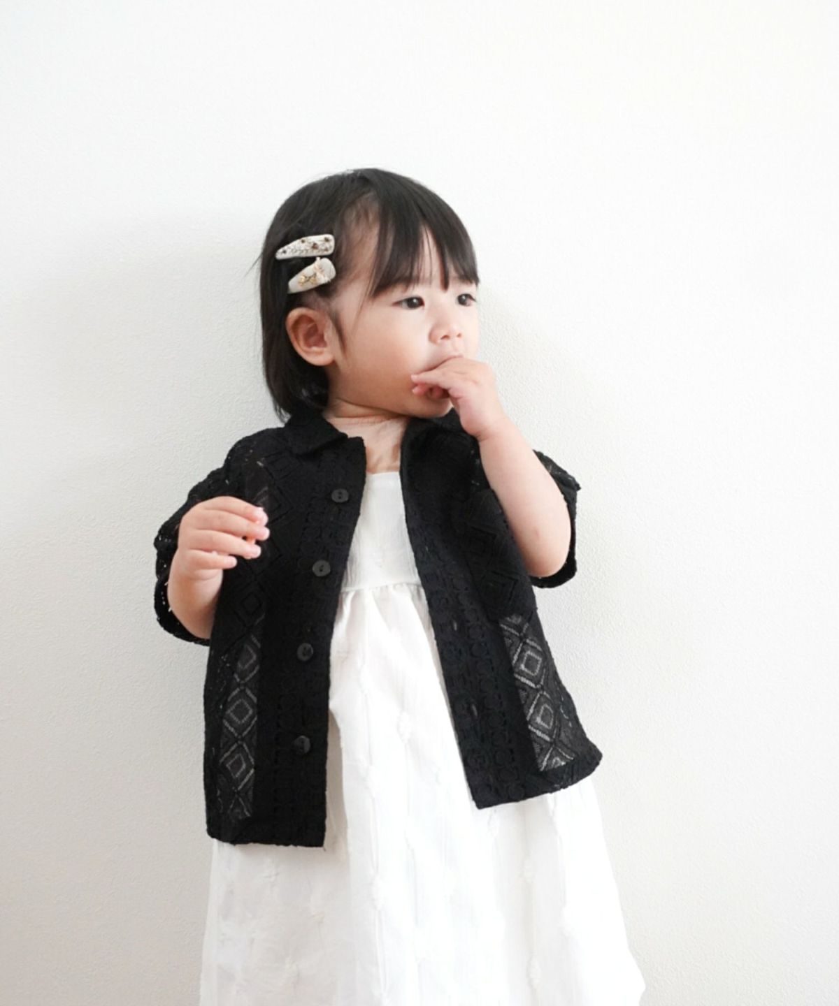 【セール】レース半袖オープンカラーシャツ■90~140cm