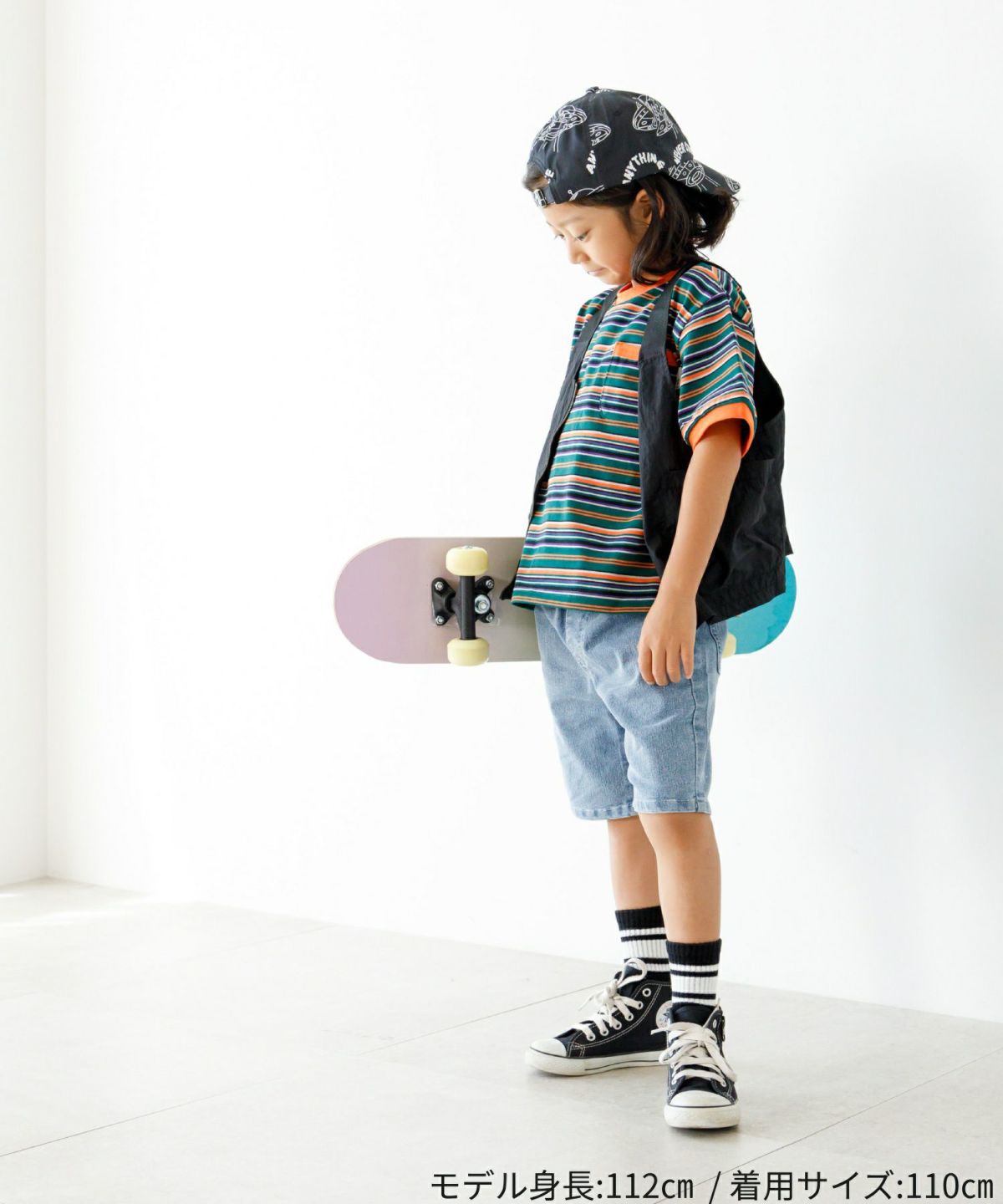 【セール】ポケット付きマルチボーダー半袖Tシャツ■90~140cm