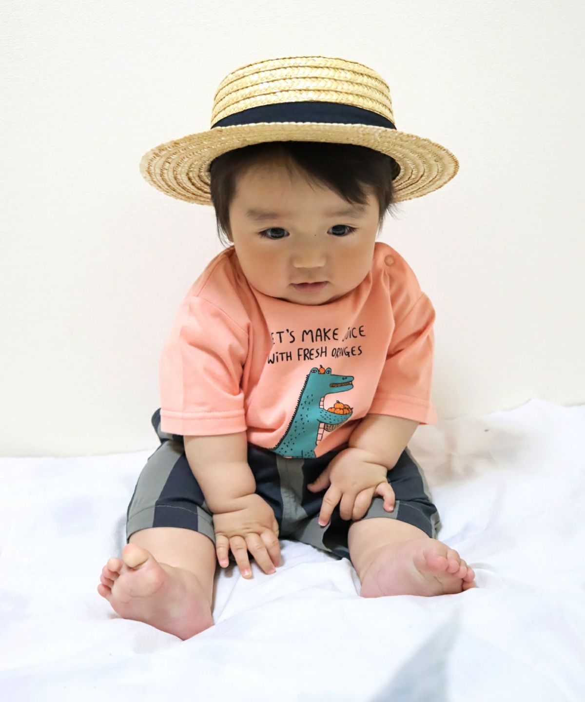 【セール】オレンジ好きのワニ柄半袖Tシャツ■80~140cm