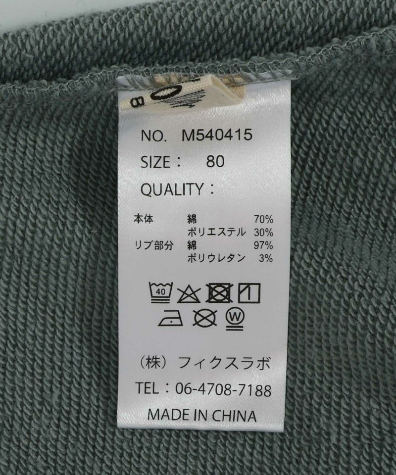 やわらかな少し薄手の裏毛素材で、長く着られる素材感です。