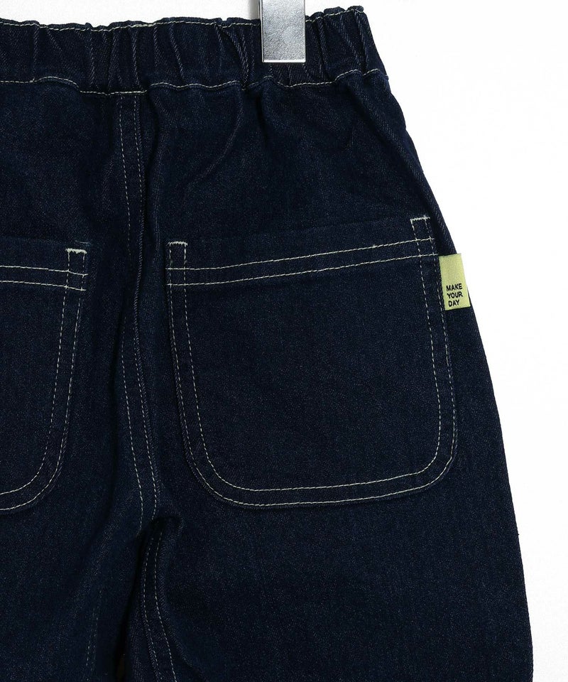 ブルーとネイビーは伸縮性のあるニットデニム、ヒッコリーは伸縮性のないストライプデニム。