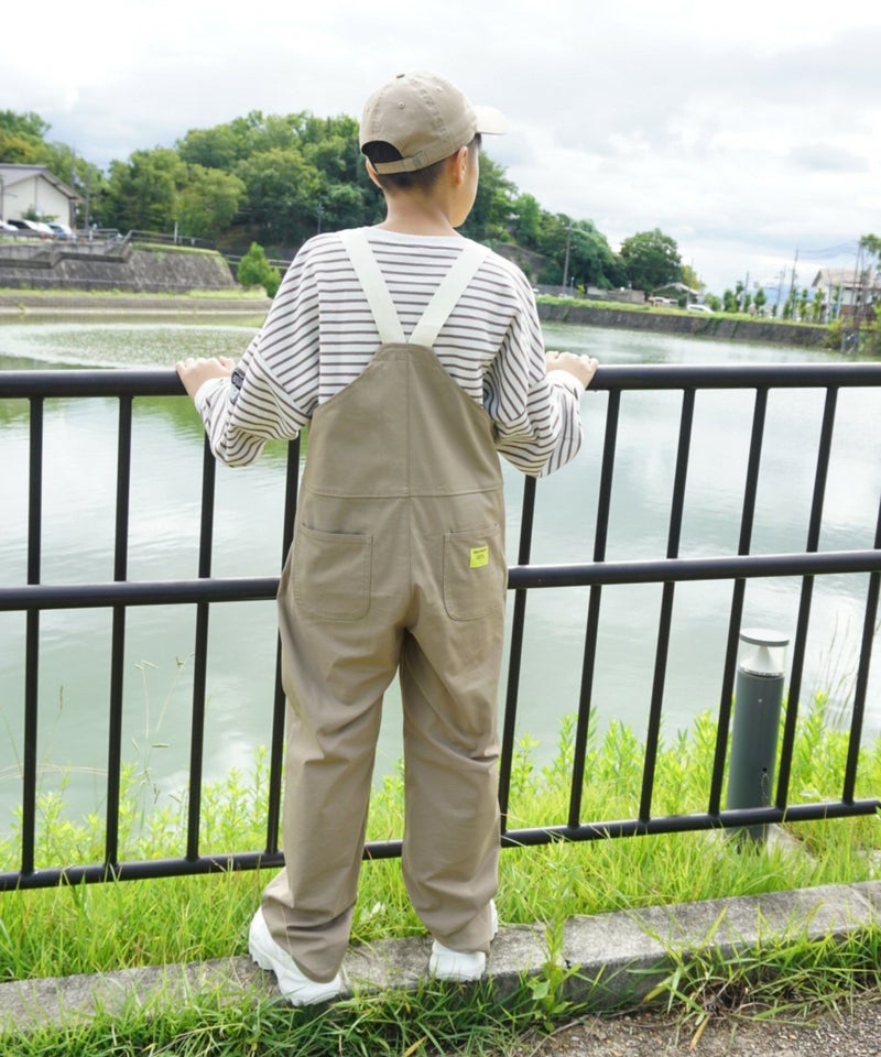 腰回りがゆったりしたシルエットになっているオ-バーオール。