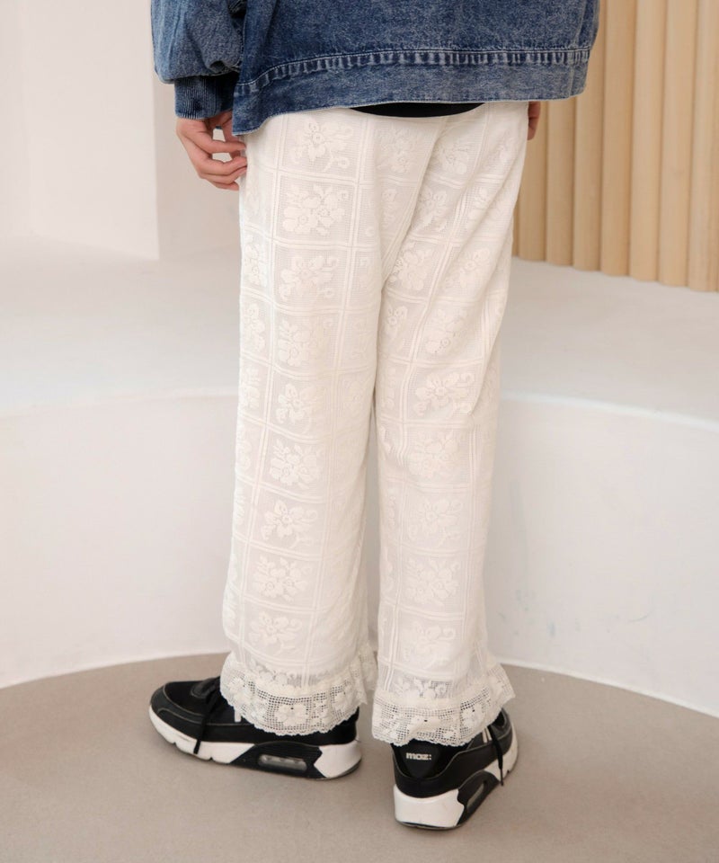 1枚あれば今春のトレンドをしっかり押さえたも同然の総レースンのワイドパンツ。