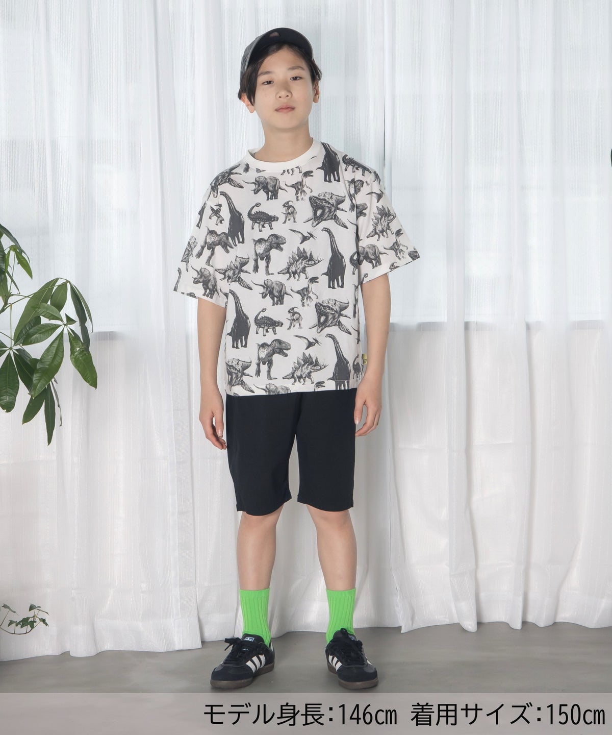 リアルダイナソー総柄半袖Tシャツ■150.160cm