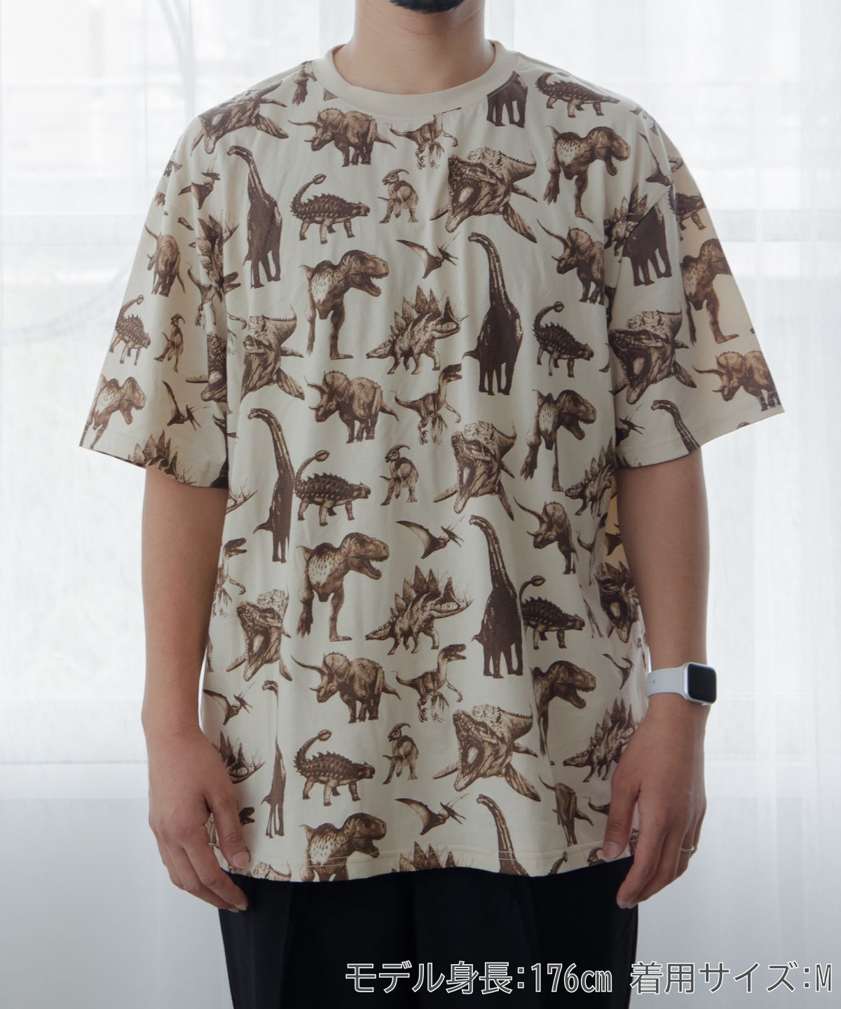 リアルダイナソー総柄半袖Tシャツ■パパサイズ