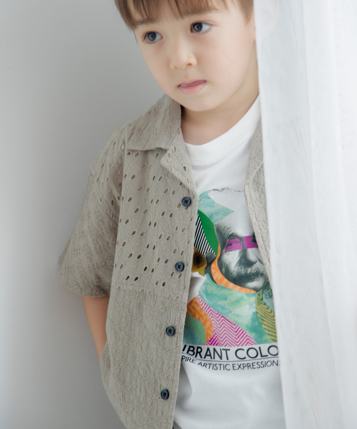 総柄バンドカラー長袖シャツ■80~140cm