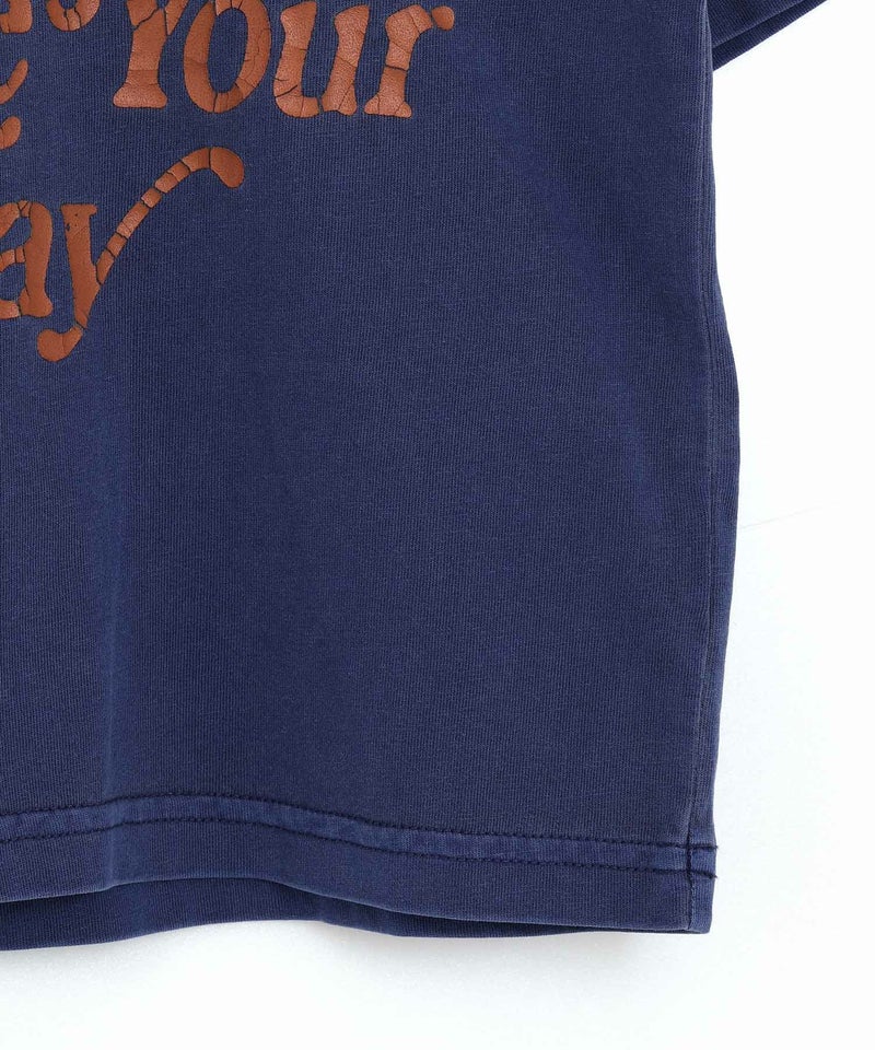 クラッキングプリントと製品染めでとことんビンテージっぽく。