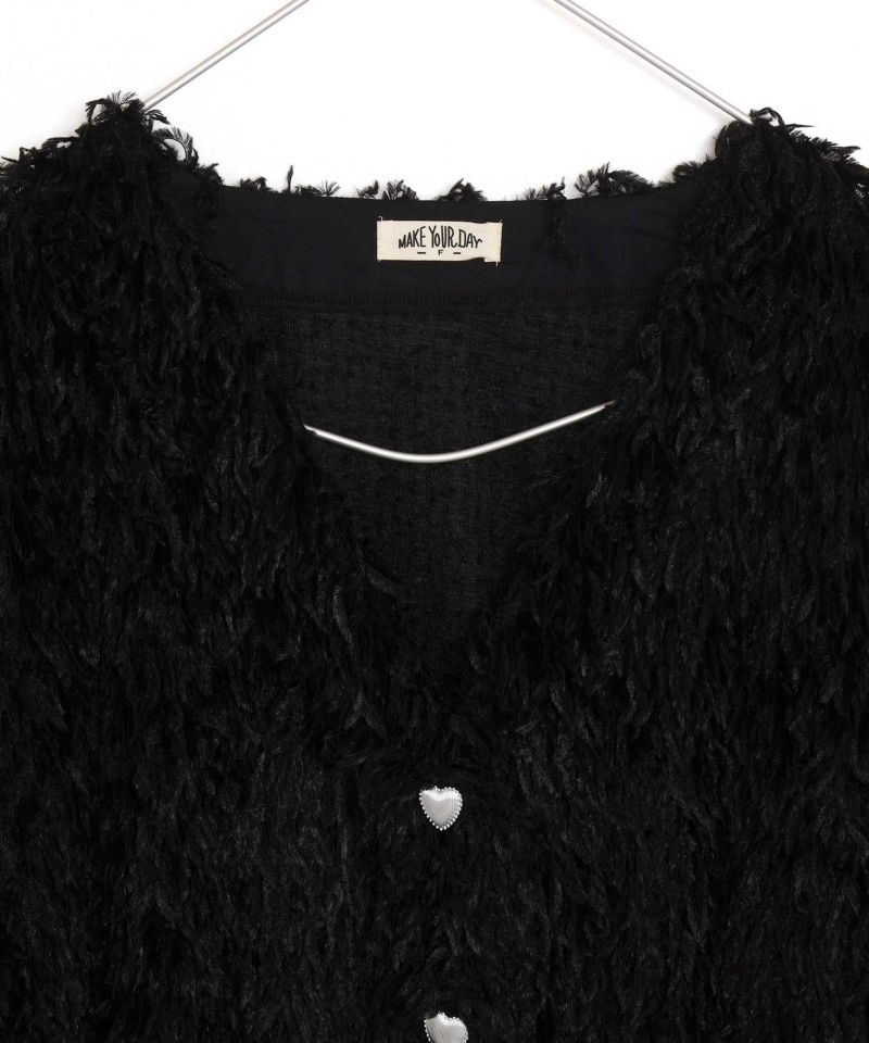 毛足が長く、ボリュームのあるデザインがかわいいカーディガンです。