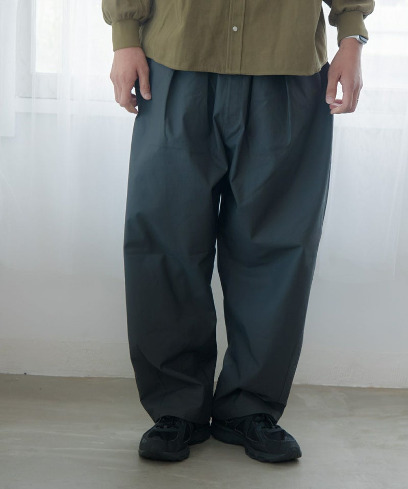 ブラック・ダークグリーンはハリのあるツイル素材、グレー・チャコールは起毛感のあるヘリンボーン柄で、どちらもキレイ目コーデにもカジュアルコーデにも着用いただけます。