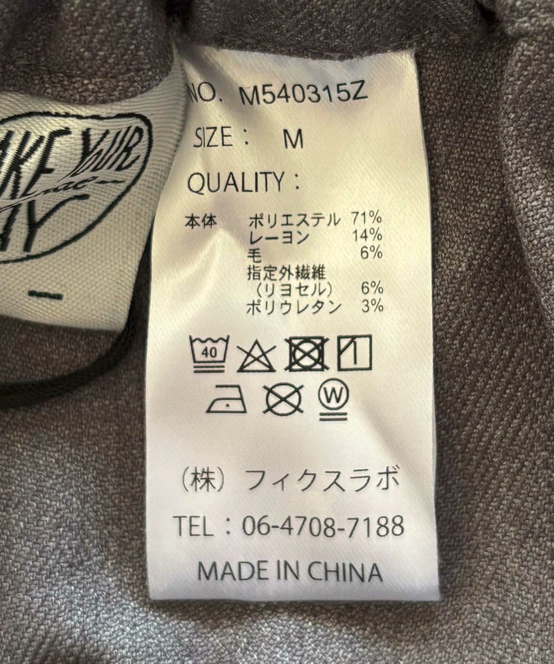M:総丈103cm,ウエスト72cm,股上37cm,ヒップ122cm,
