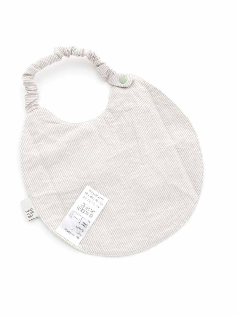 肌触りのいいWガーゼと、優しい柄のリバーシブルで使えるスタイ。