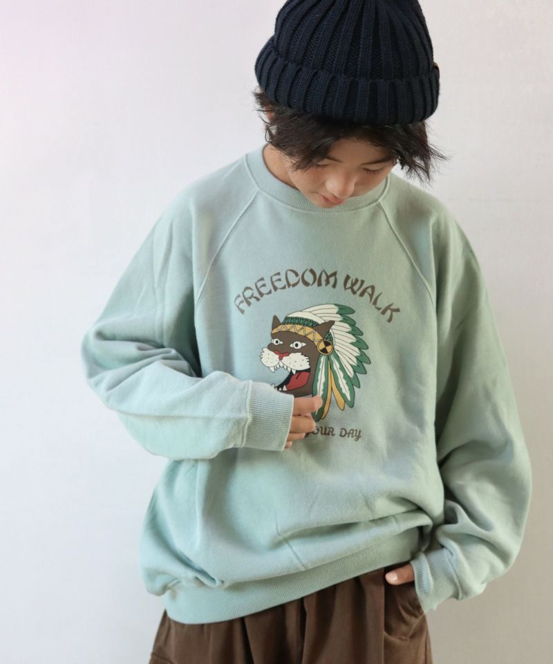 プリントに目が行きがちだけど、ラグランの切り替えやドルマンスリーブになっているデザインなど形もかわいいおしゃれなトレーナーです。