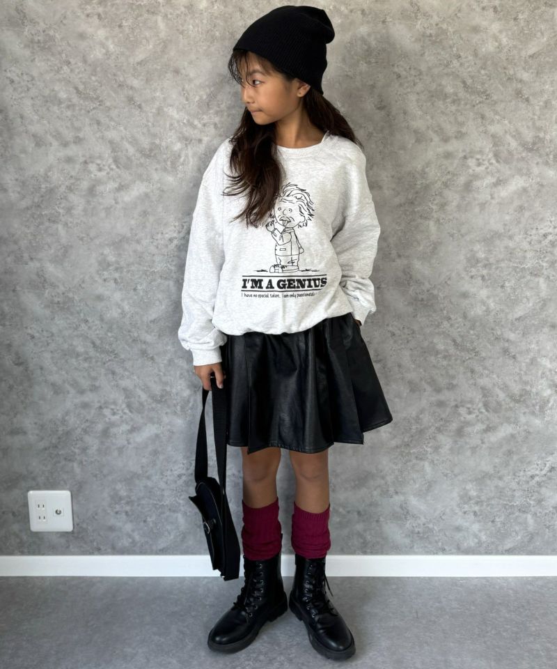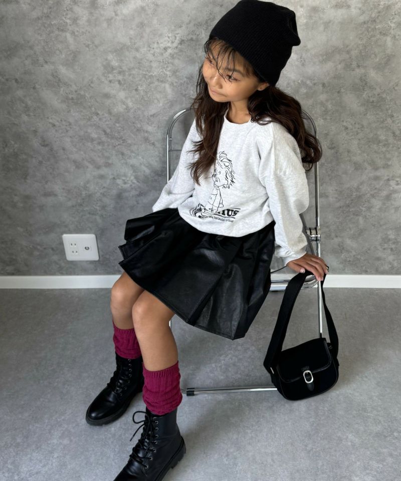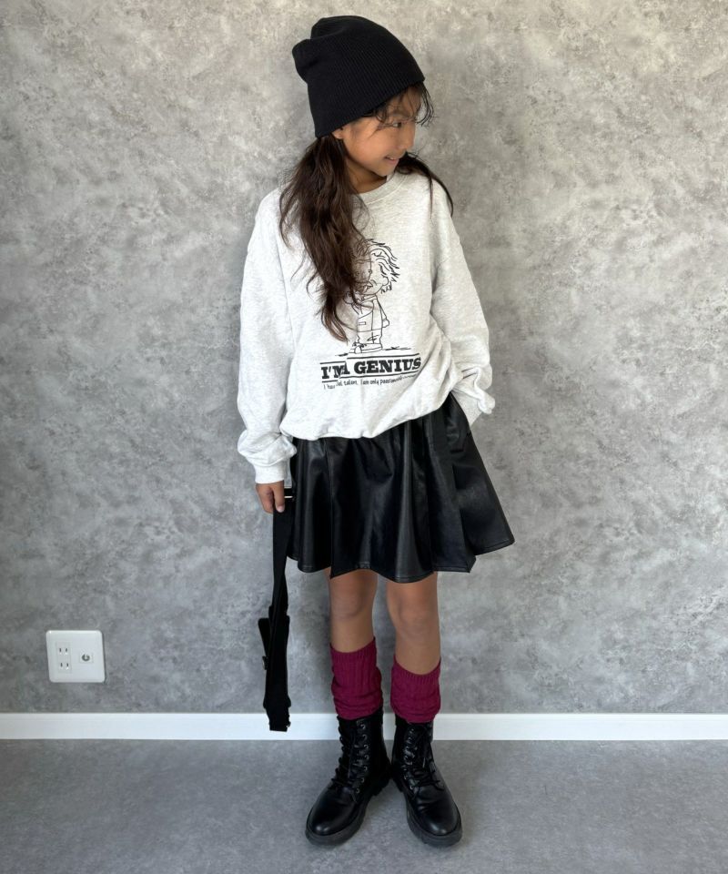 スウェットを合わせて、K-POPアイドルのようなキュートさのあるコーディネートが楽しめます。