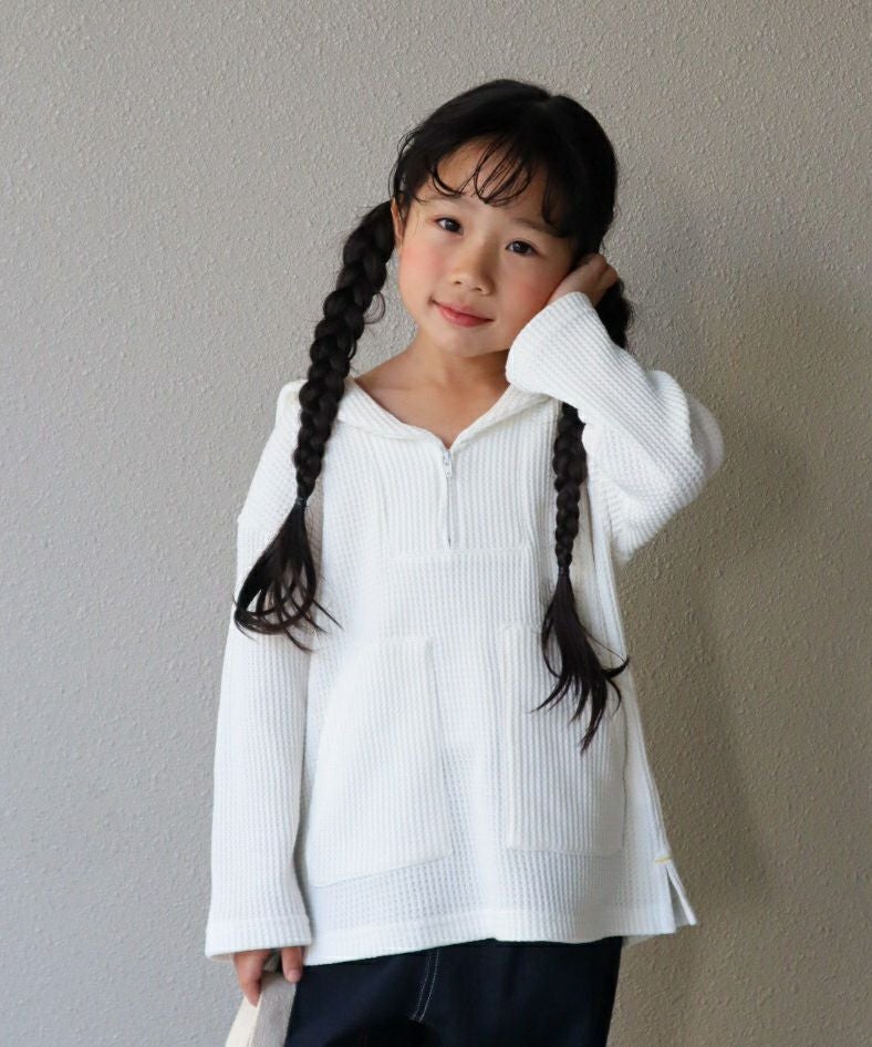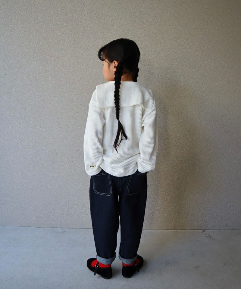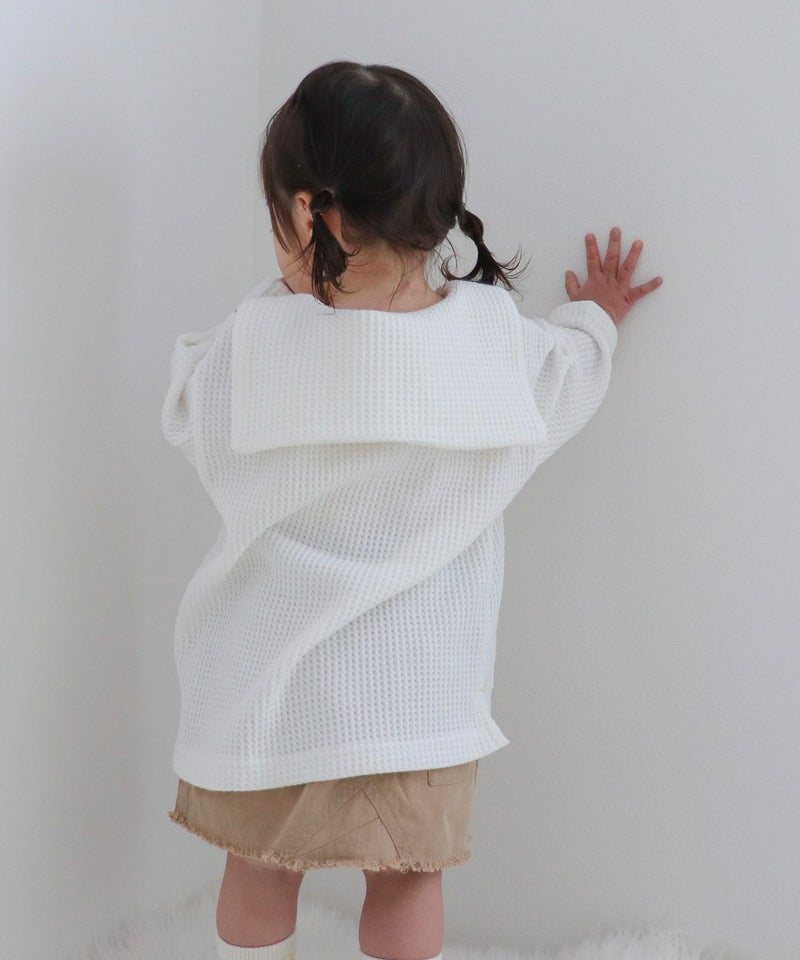 【セール】セーラーカラーワッフル長袖Tシャツ■90~140cm