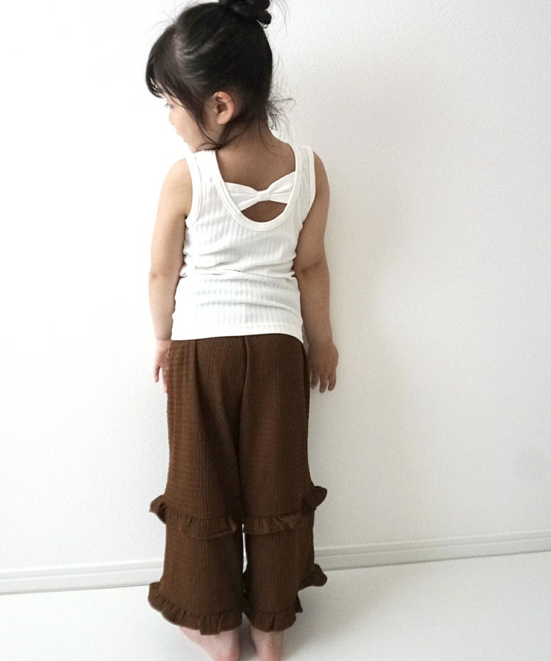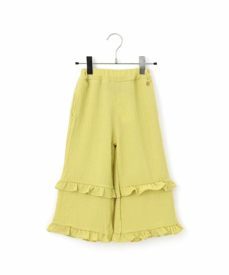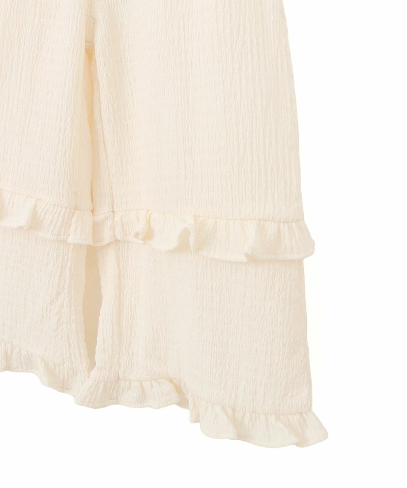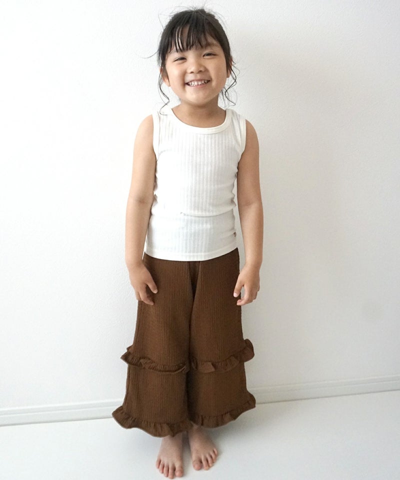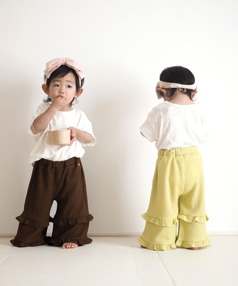 トレンドのぽこぽこした素材のパンツでスタイルアップを叶えてくれるバツグンのシルエット!