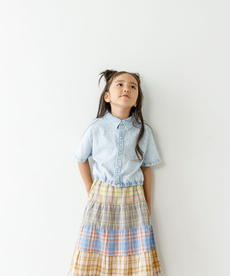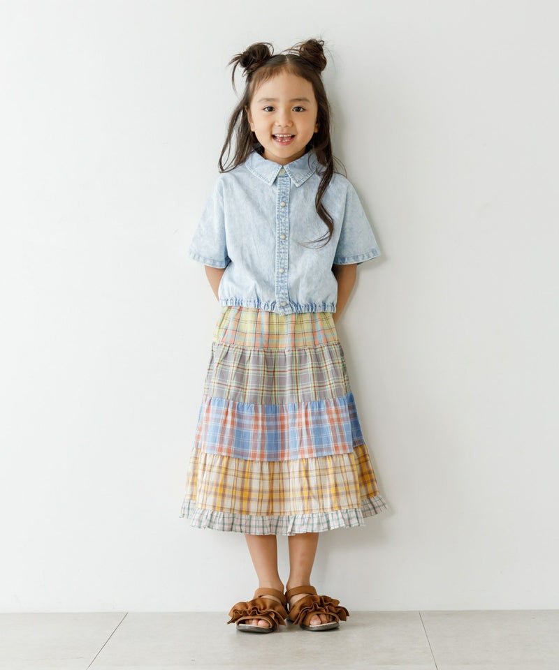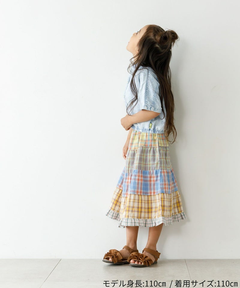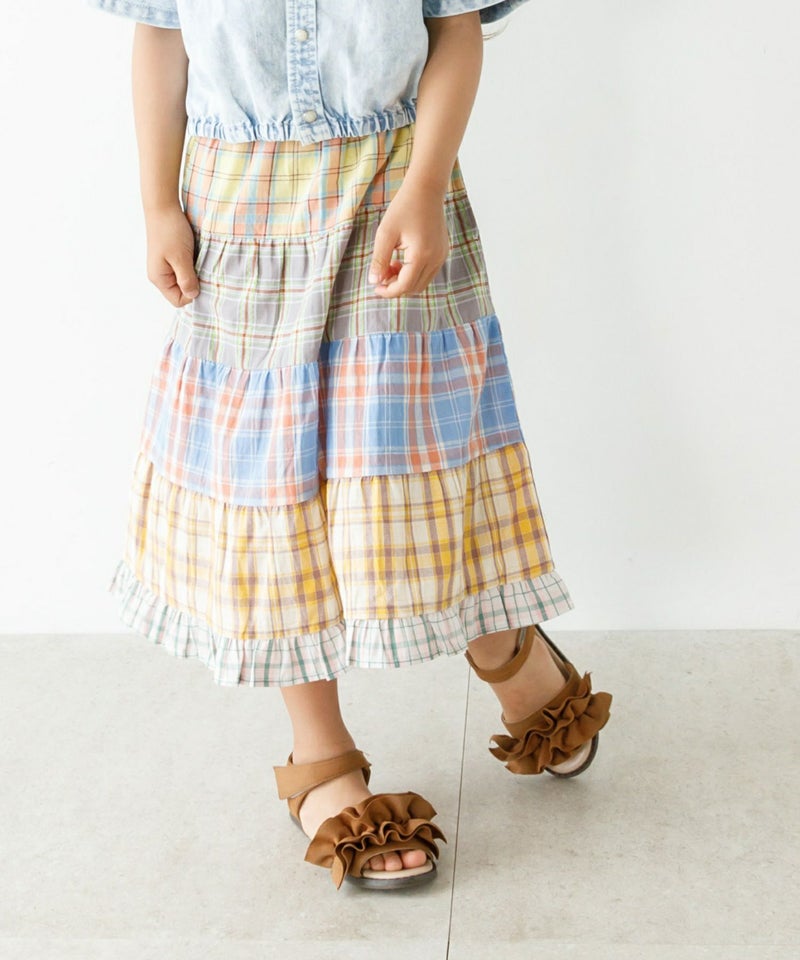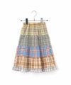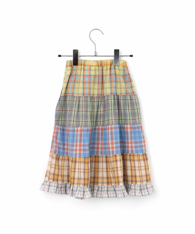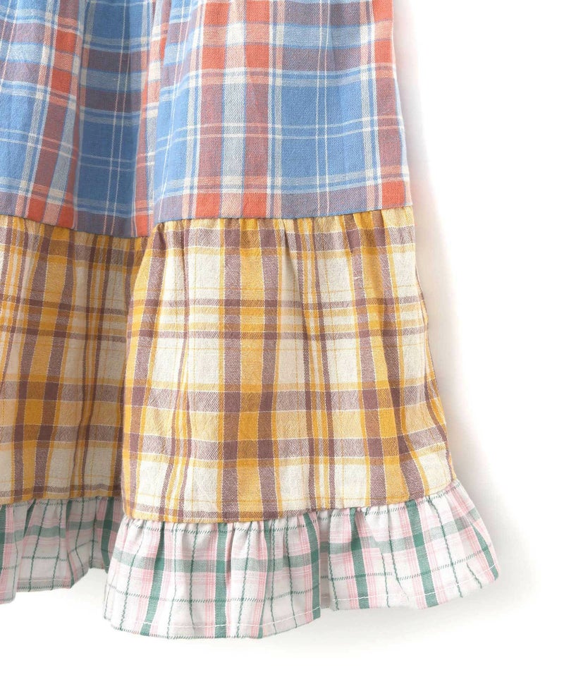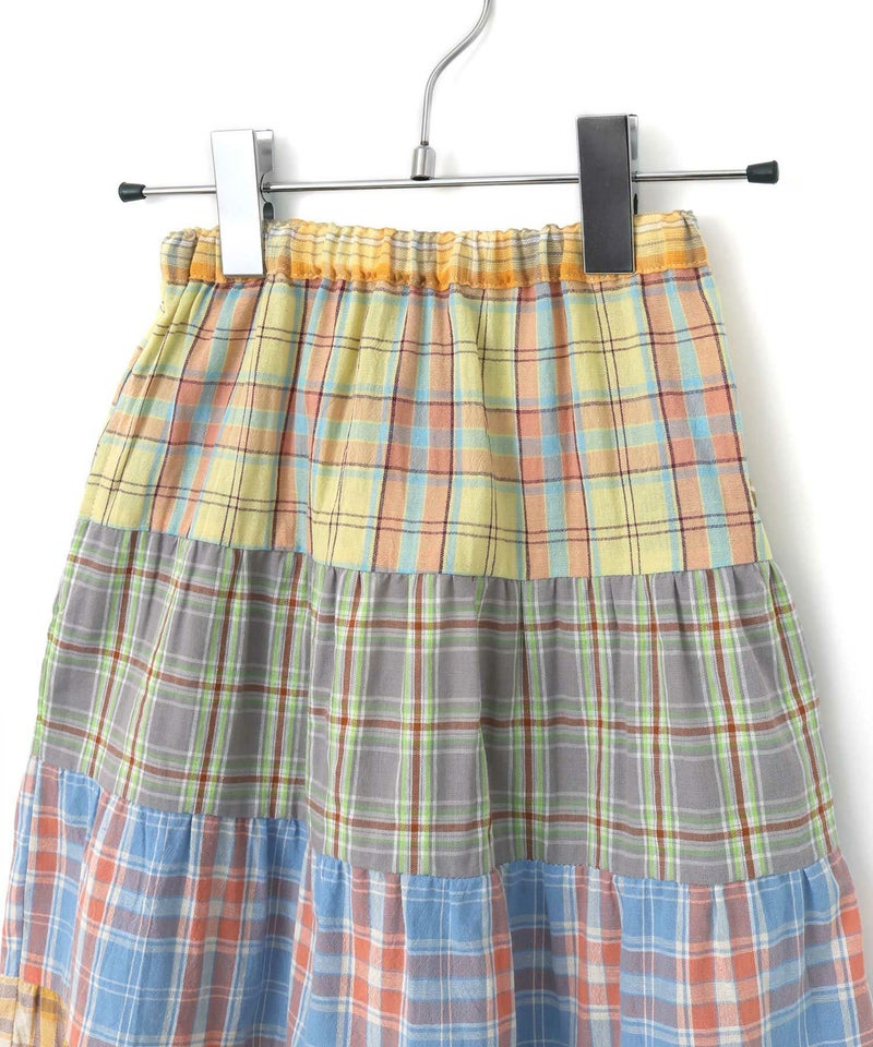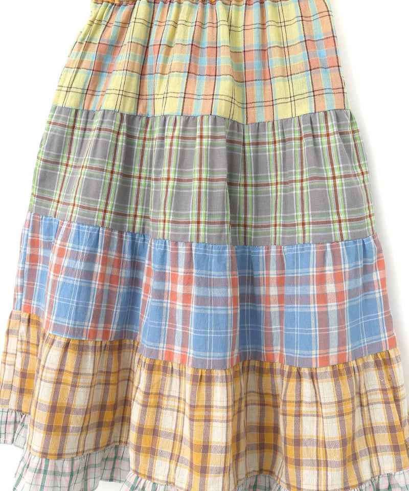 いろんなチェックが組み合わされているレトロなティアードスカート。