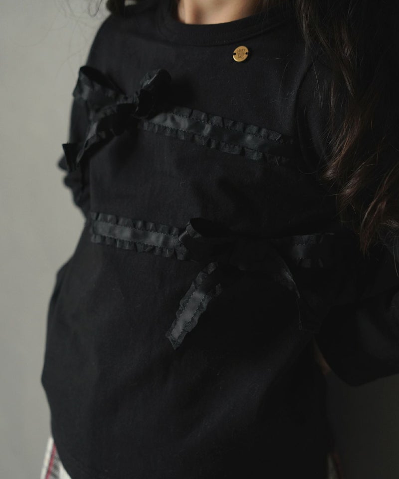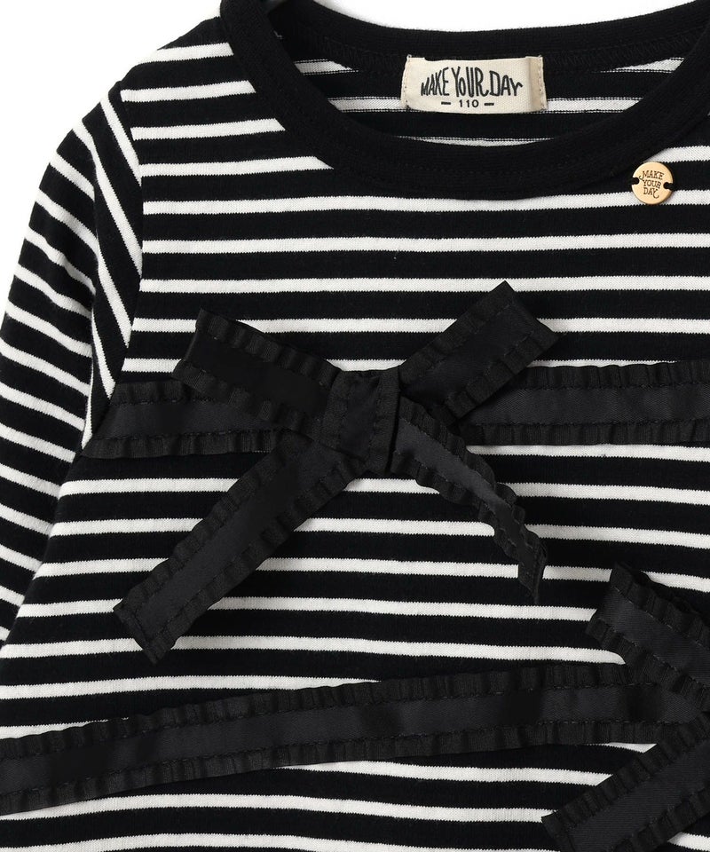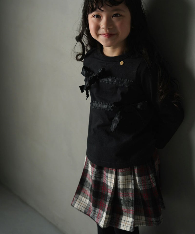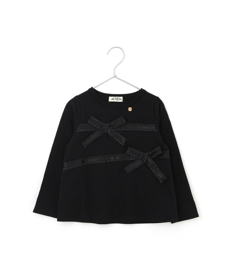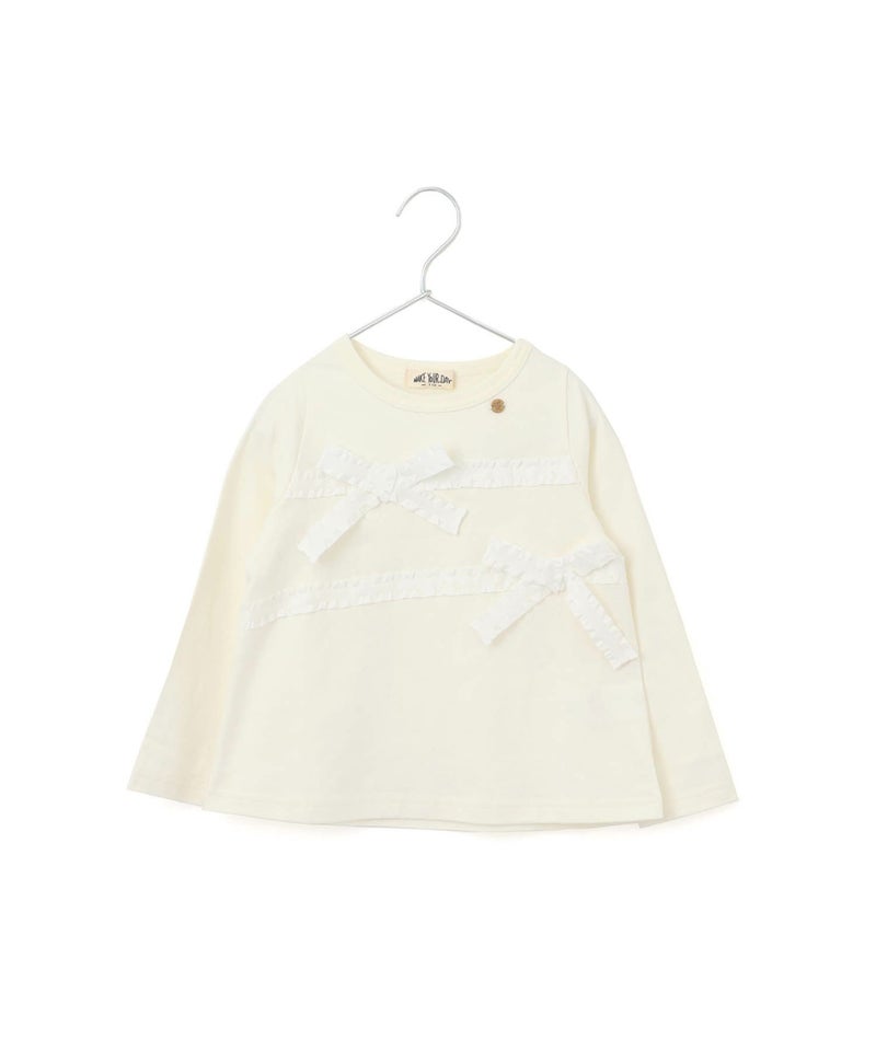 【セール】リボン付きモノトーン長袖Tシャツ■80~140cm