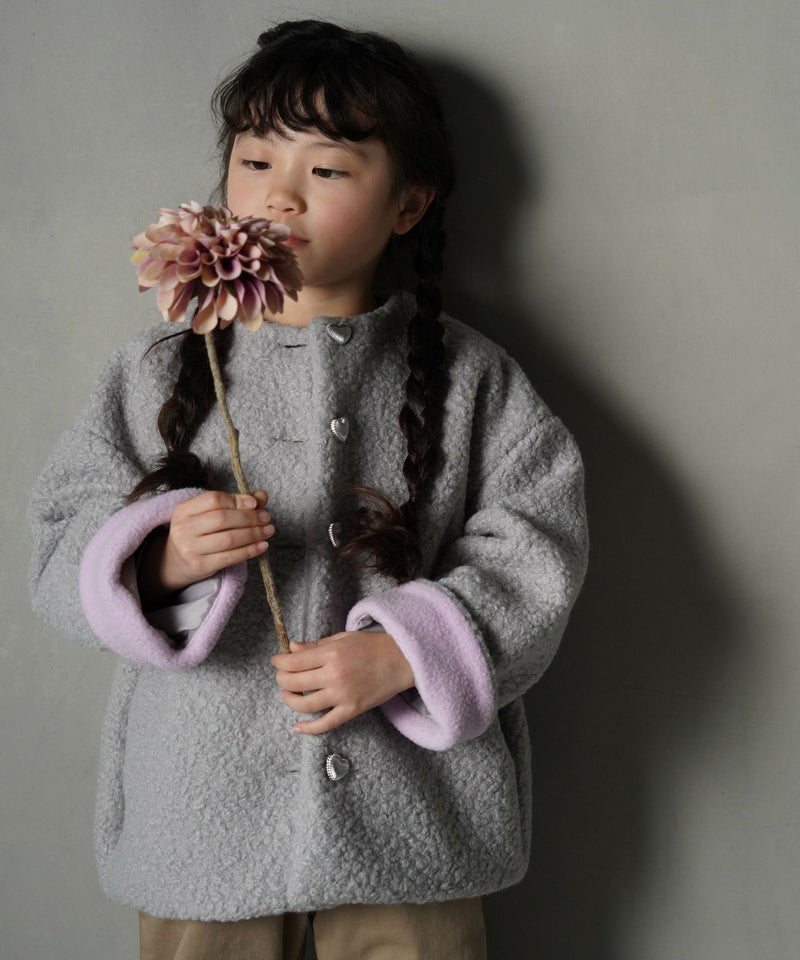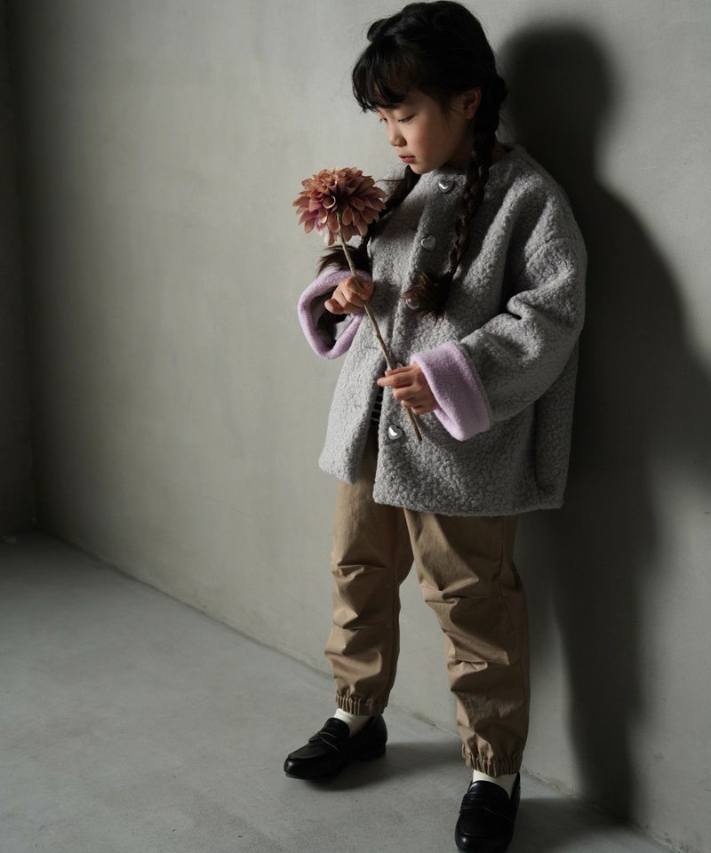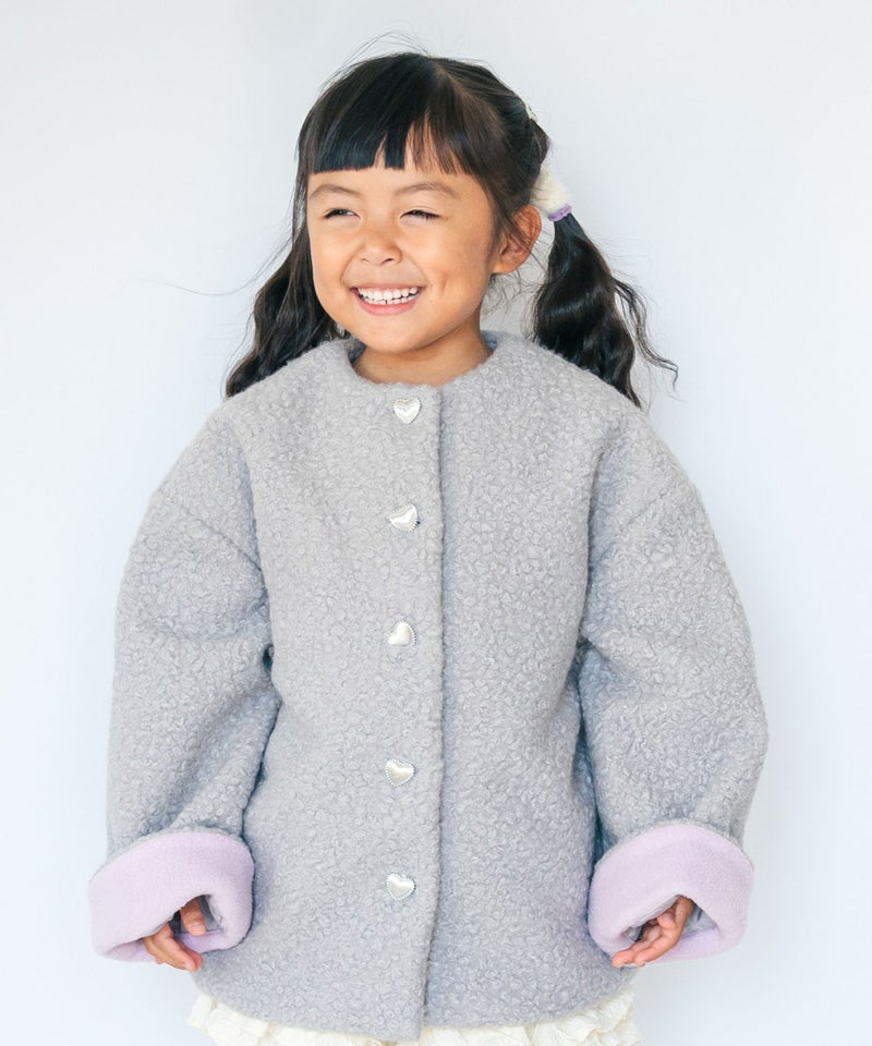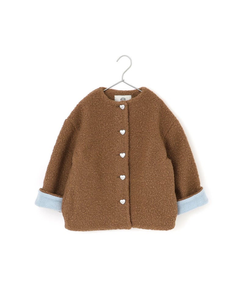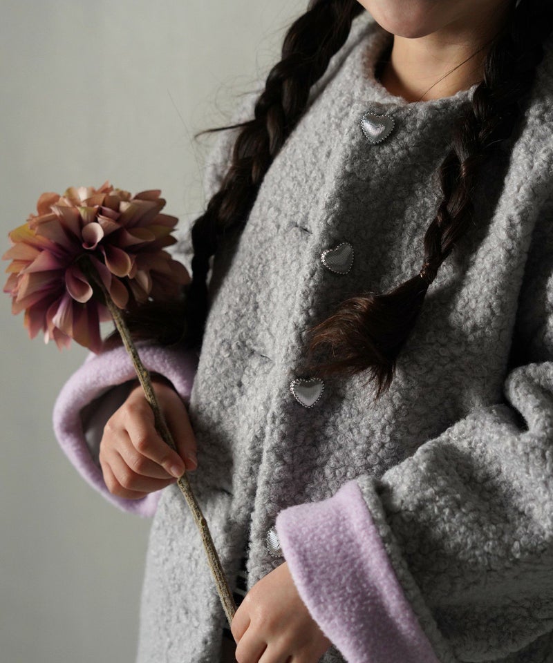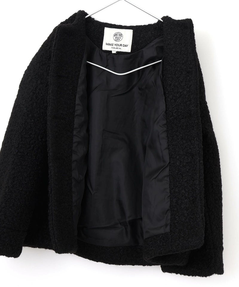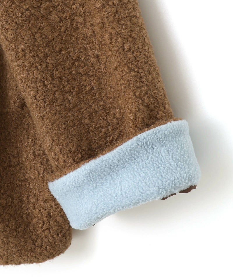 くるくるのブークレーを使用したコクーンシルエットのコート。