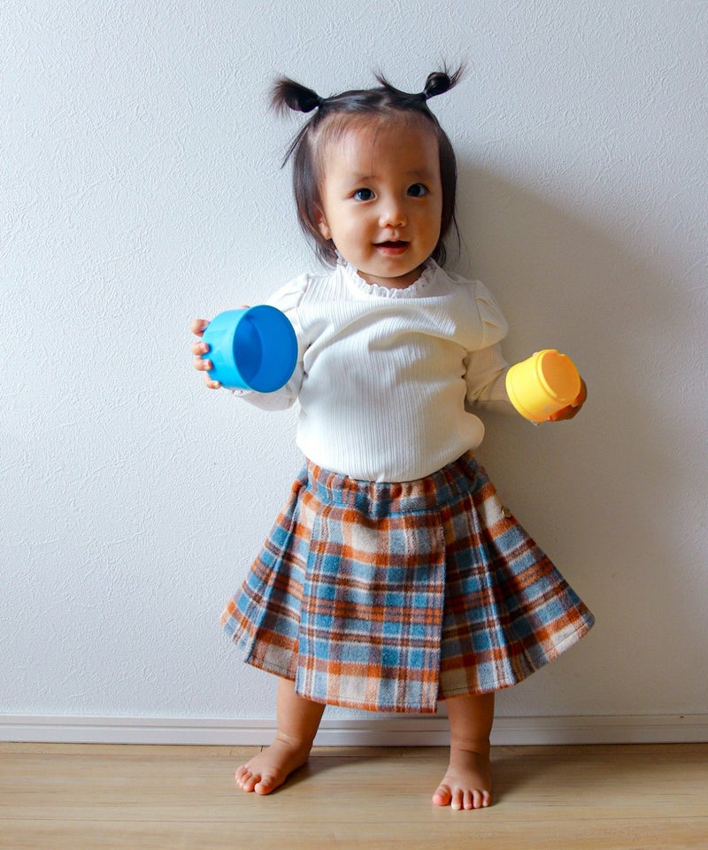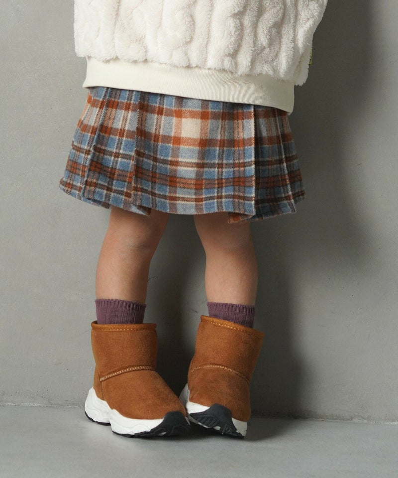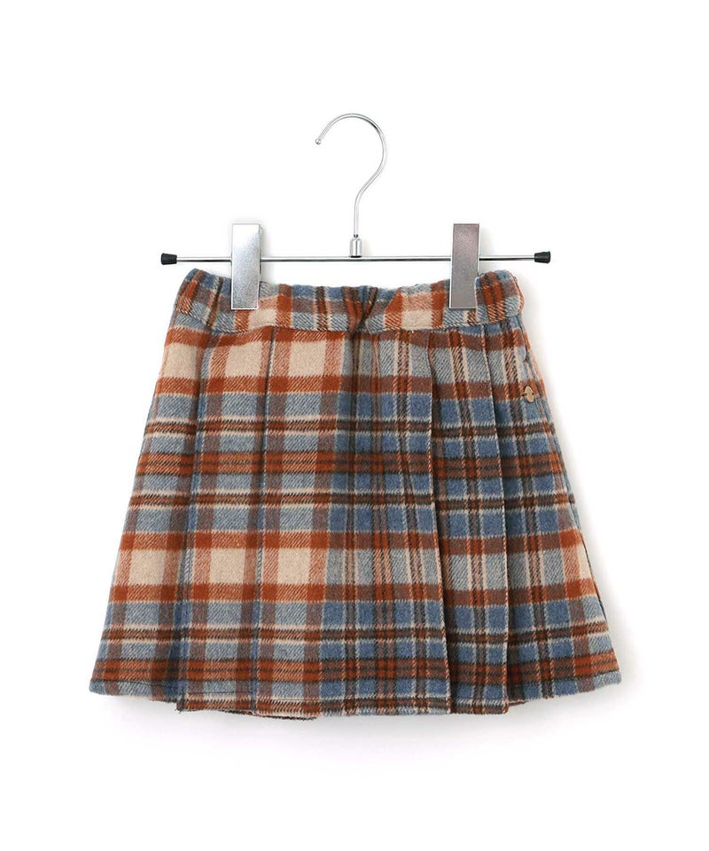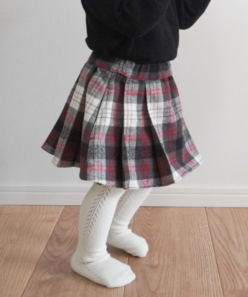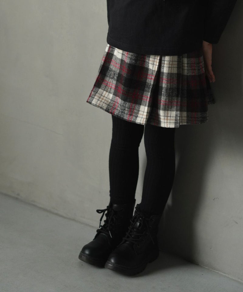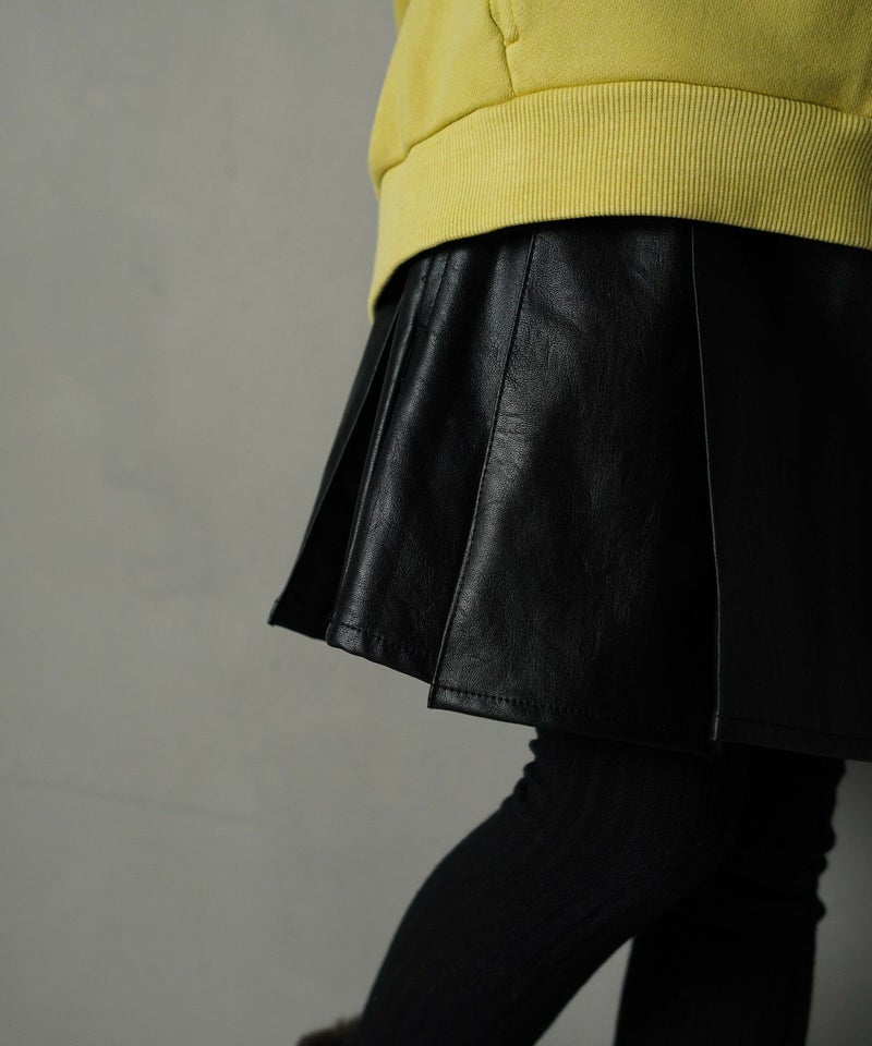 【セール】チェックとフェイクレザーのプリーツスカート■80~140cm