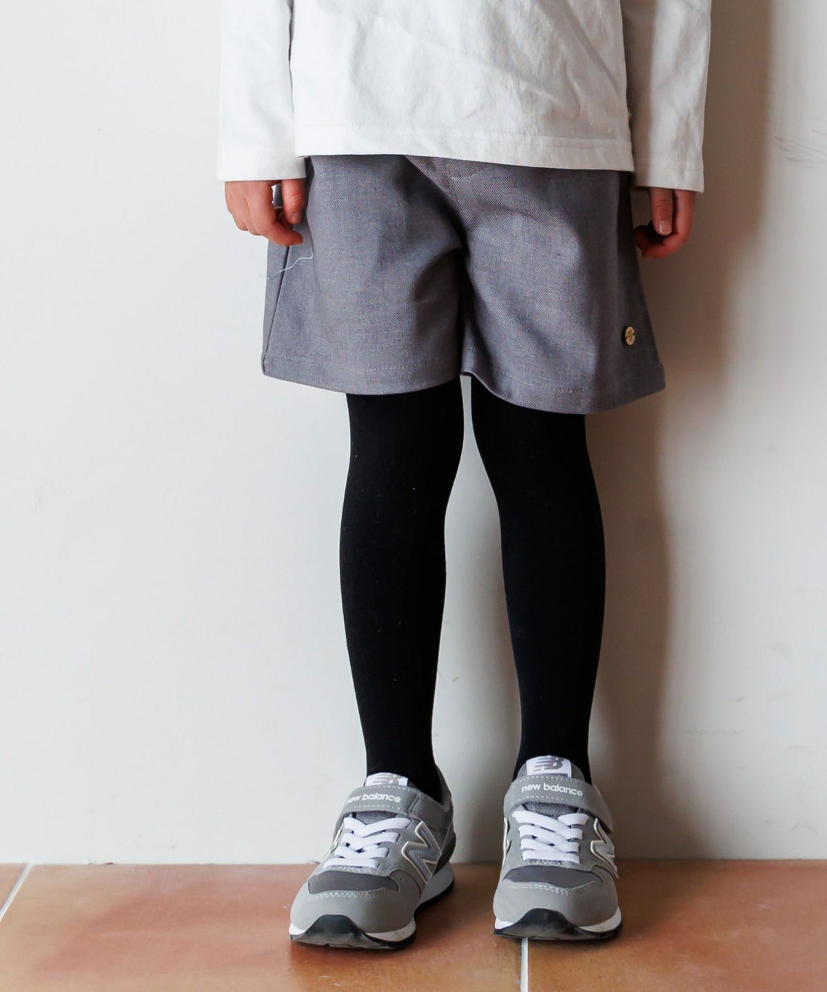 【セール】フェイクレザーとヘリンボーンのショートパンツ■80~140cm
