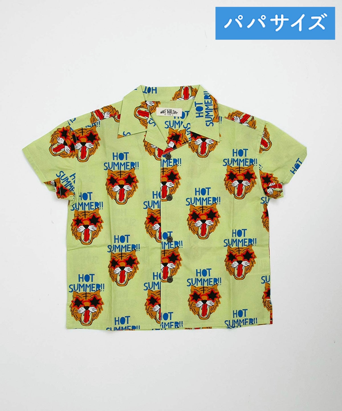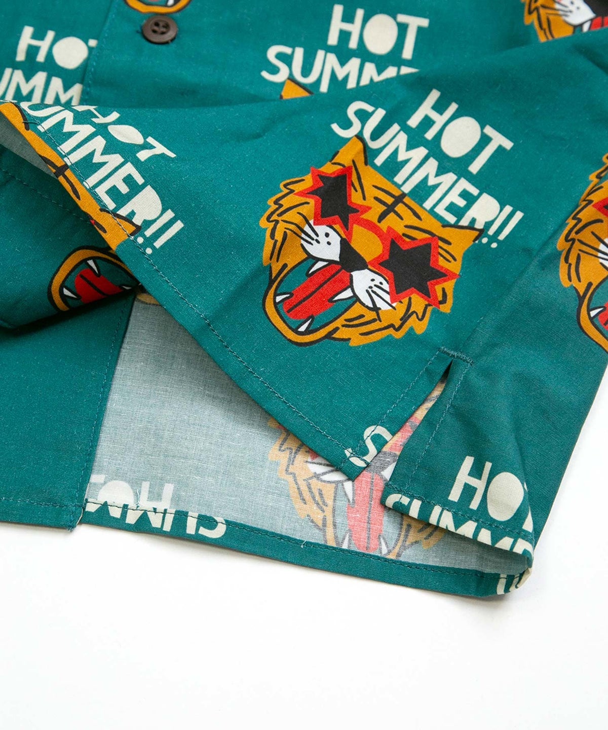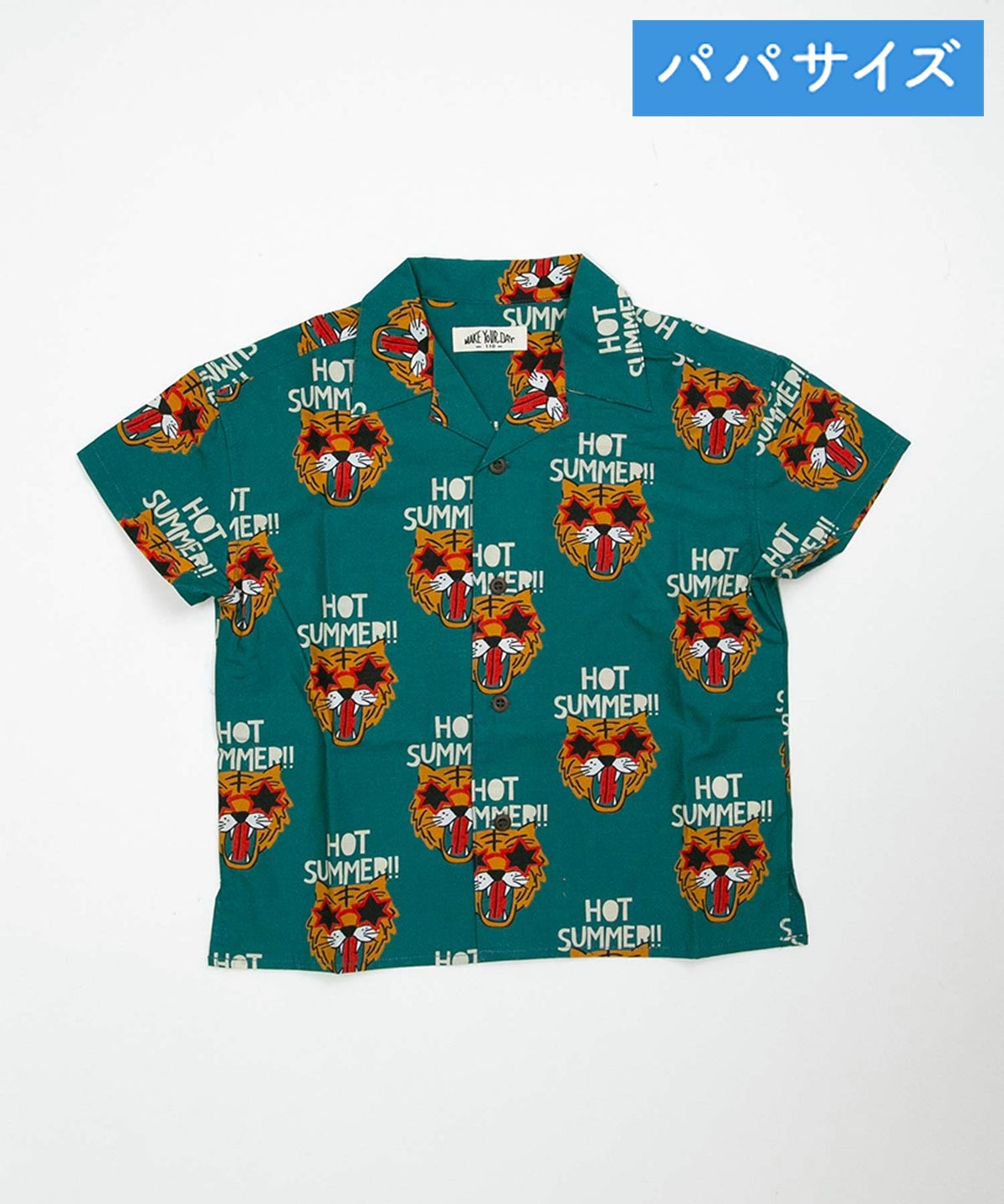 文字とトラ柄綿麻半袖シャツ■パパサイズ