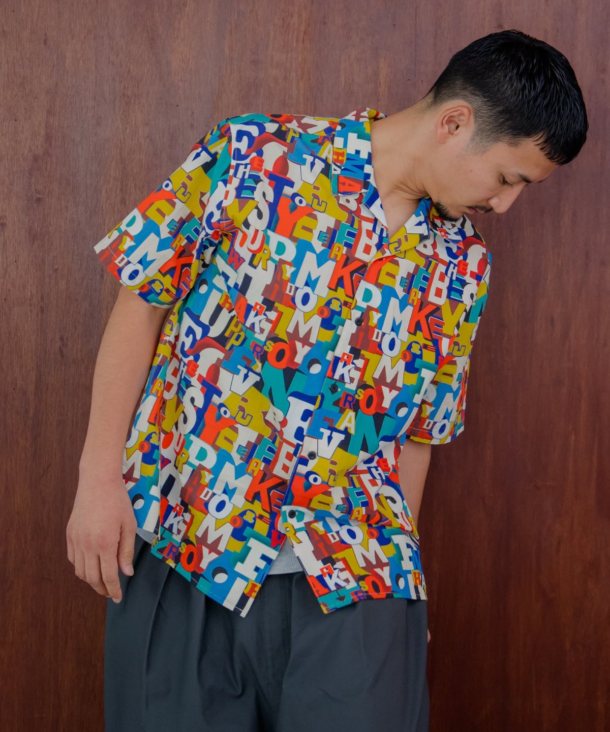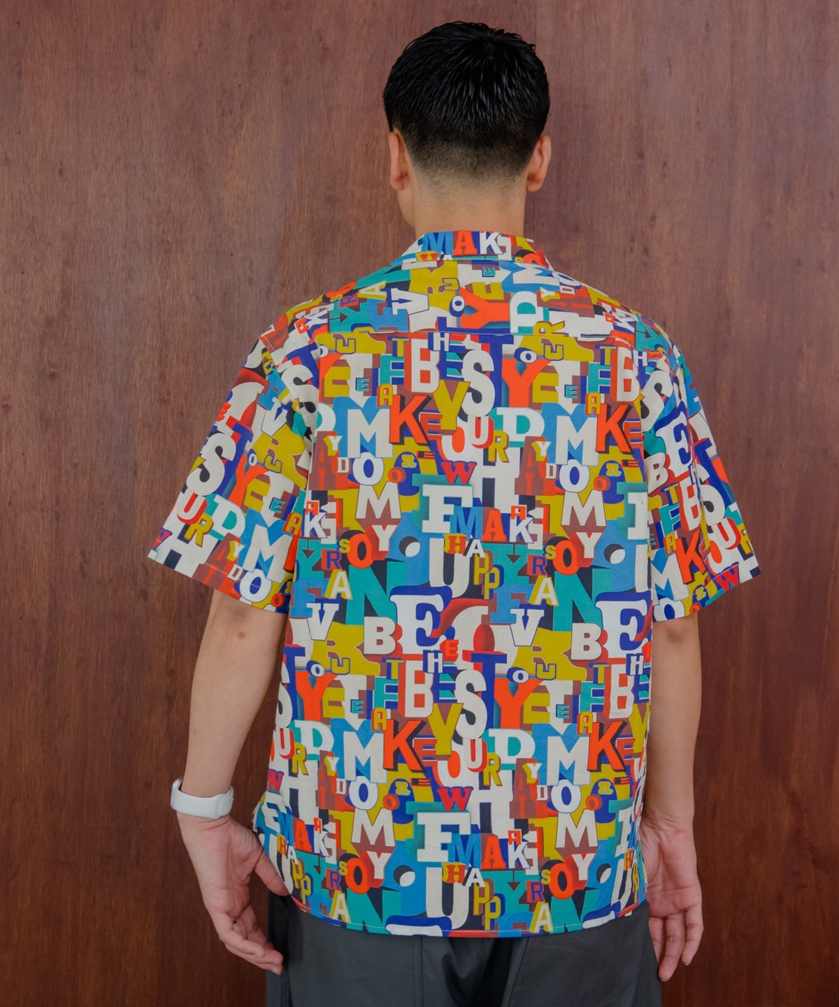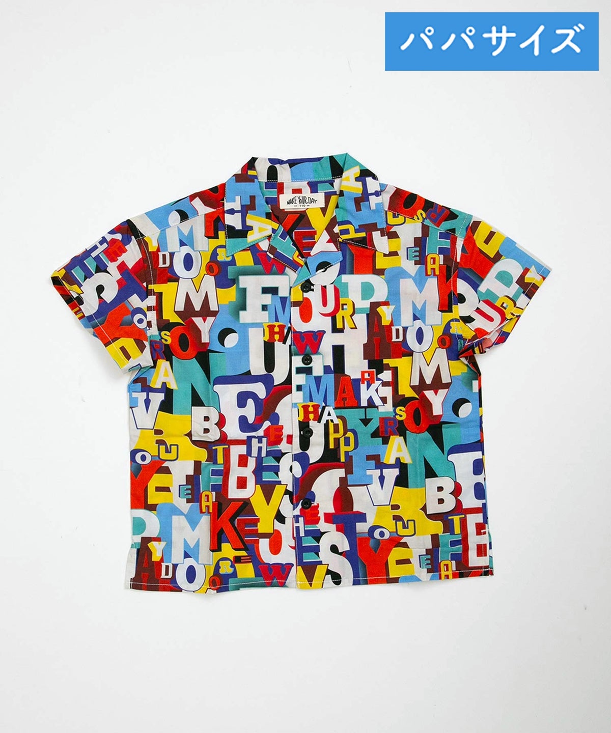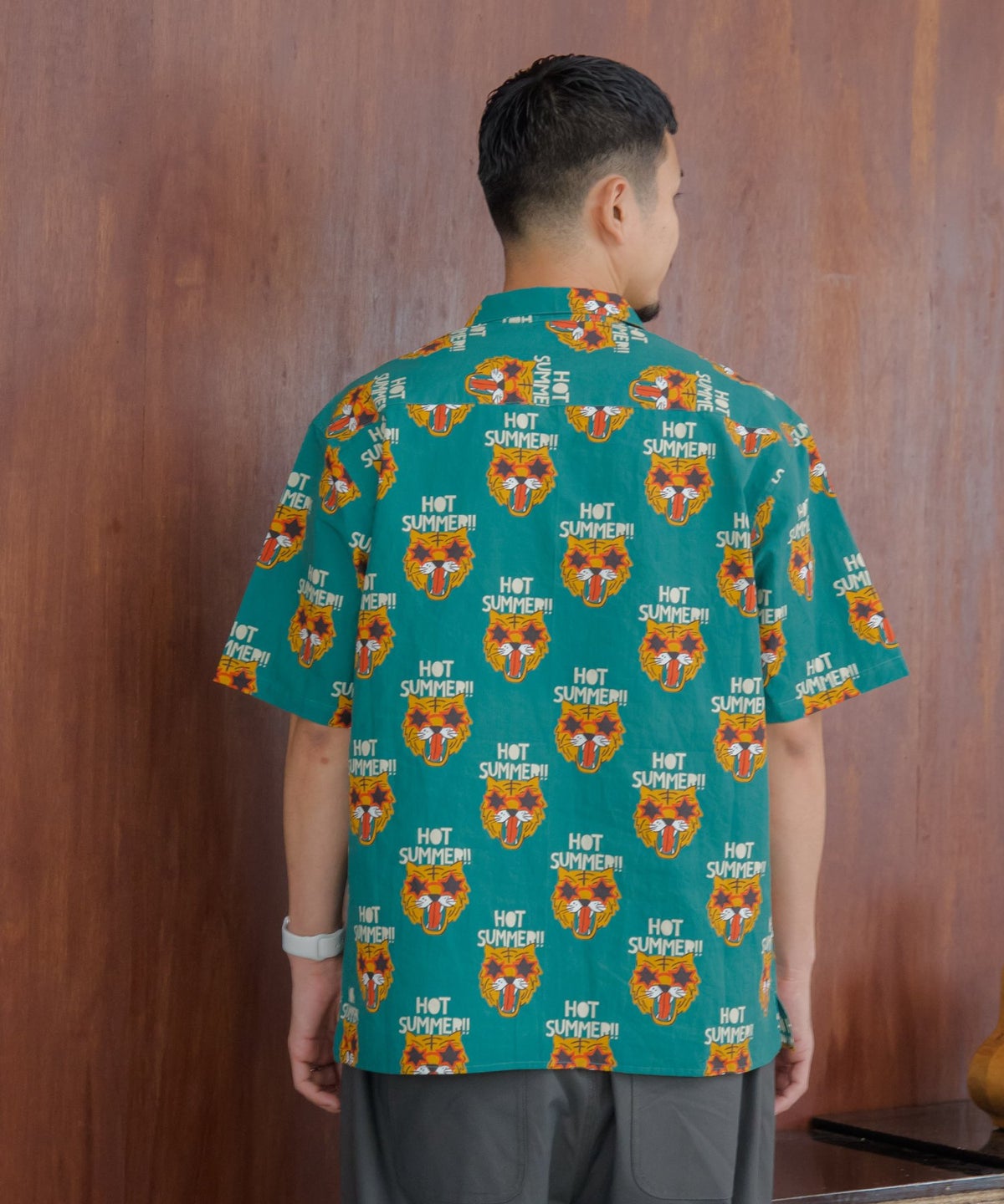 文字とトラ柄綿麻半袖シャツ■パパサイズ