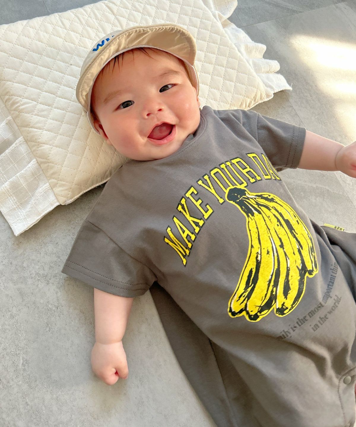 【セール】バナナとロゴ半袖ロンパス