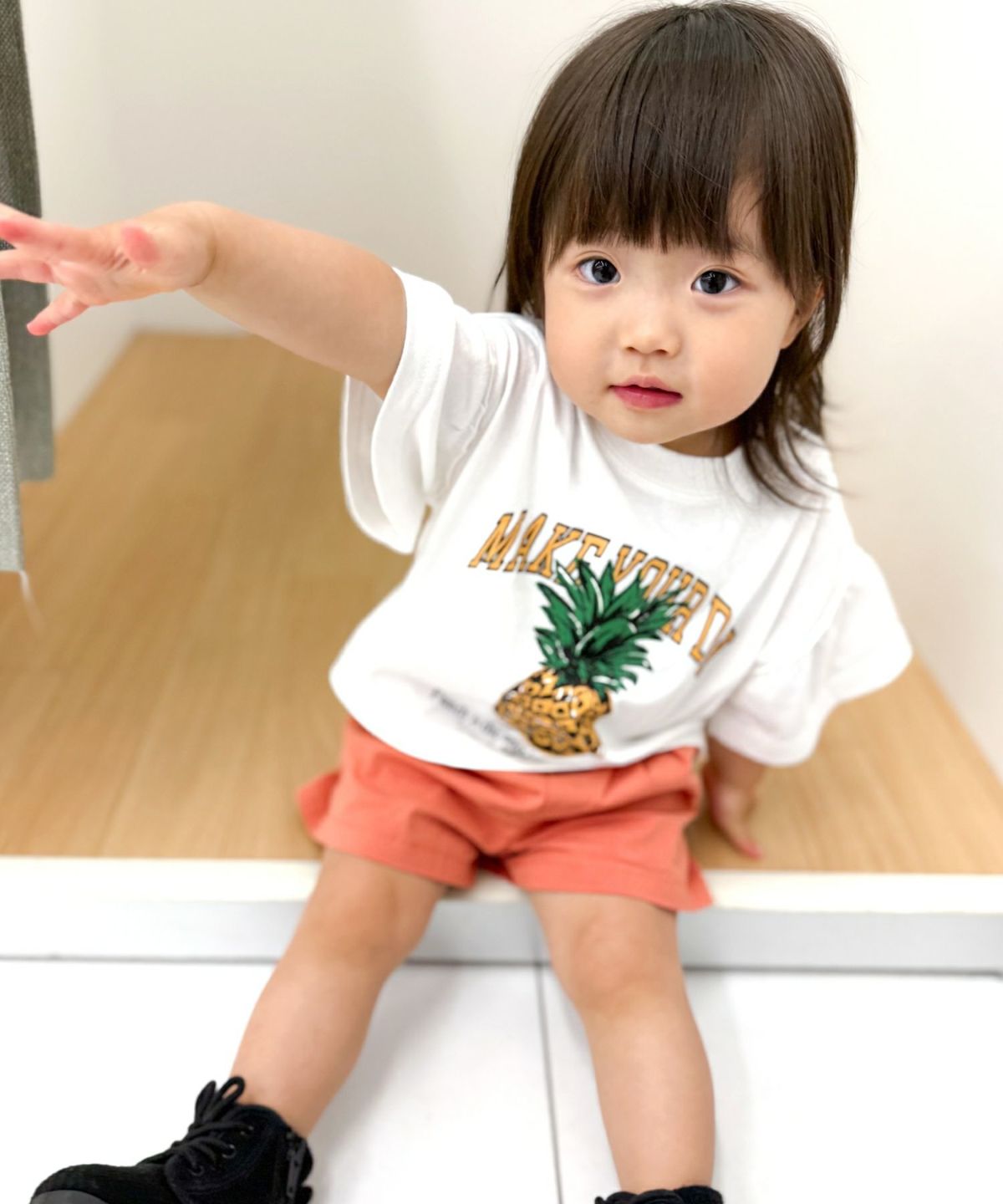 【セール】パインとロゴのフリル半袖Tシャツ■80~140cm