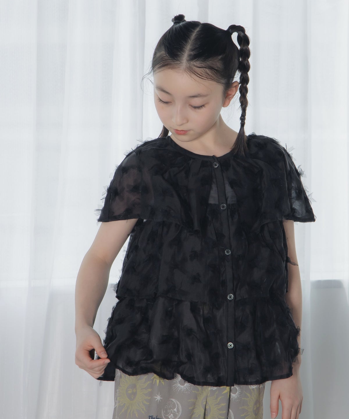 宇宙と花柄テロテロ半袖シャツ■150.160cm
