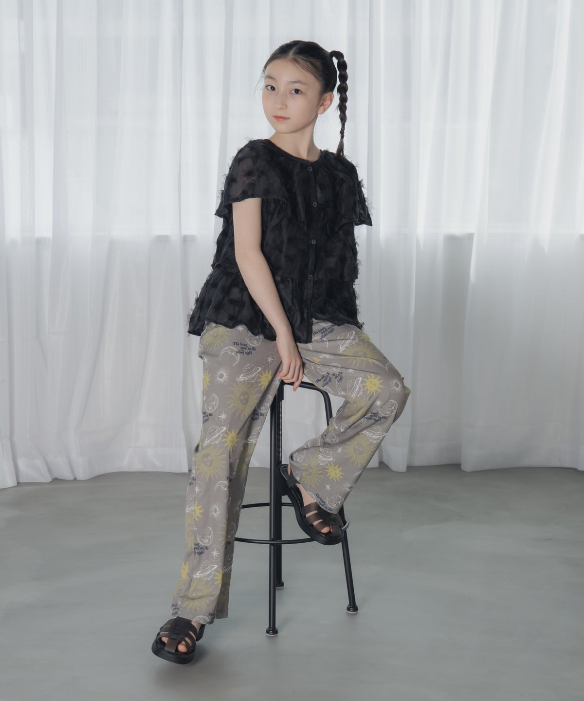 宇宙と花柄テロテロフル丈パンツ■150.160cm