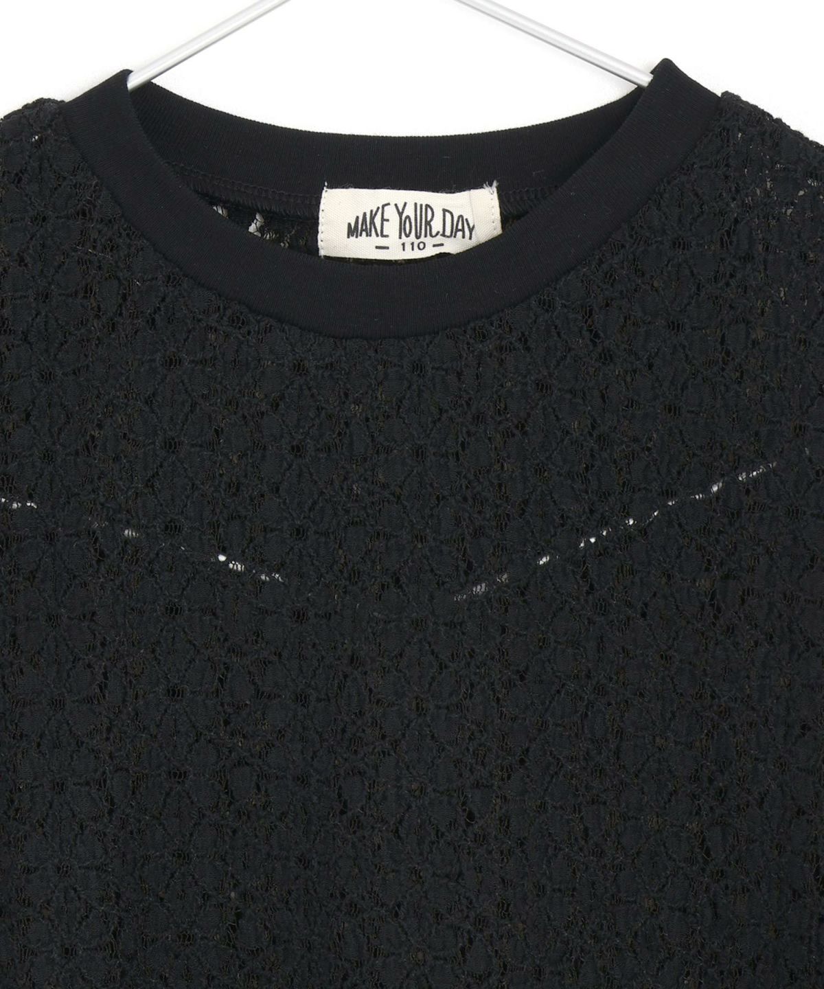 【セール】ママとおそろい フラワーレースフレンチ袖Tシャツ■150.160cm