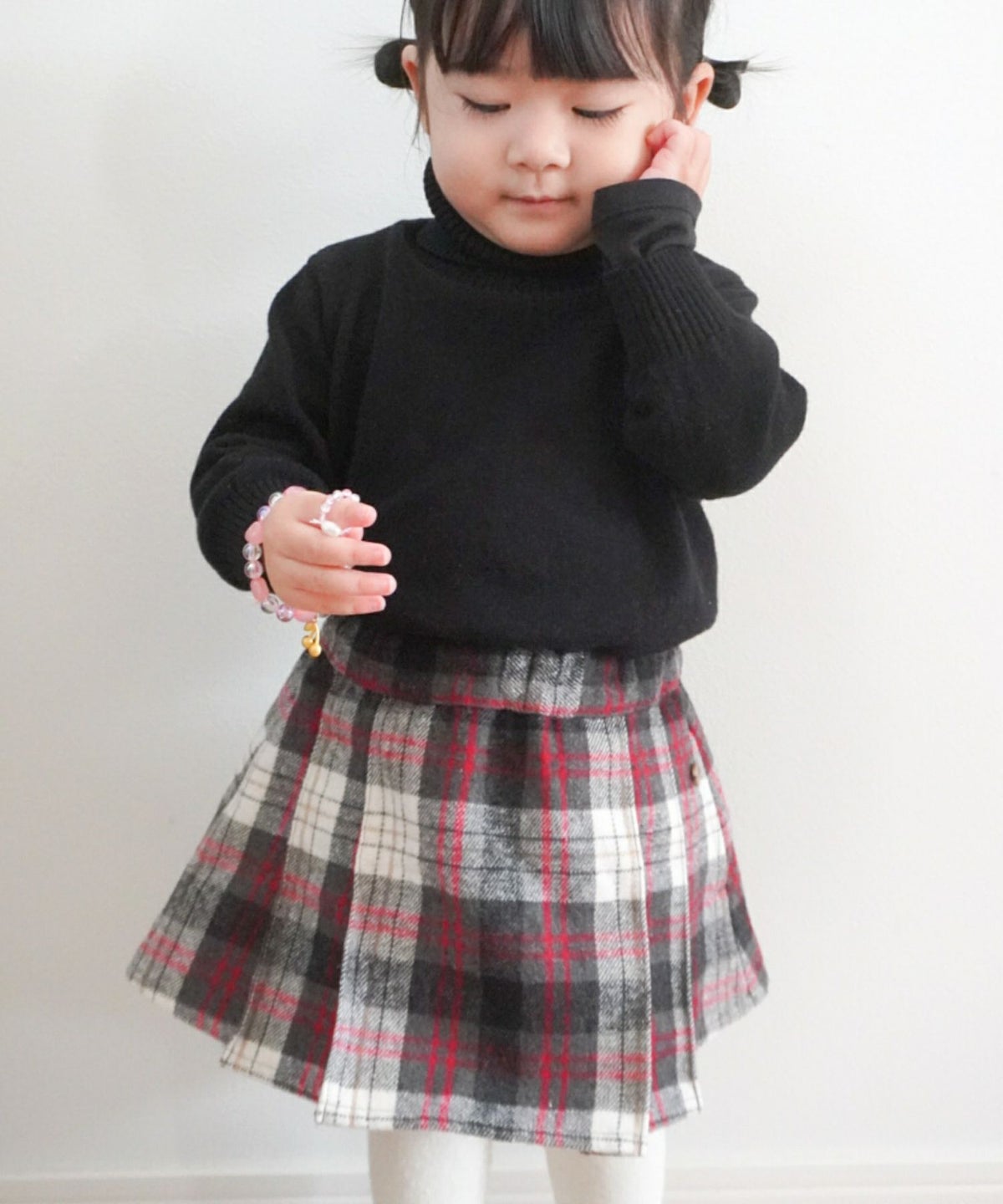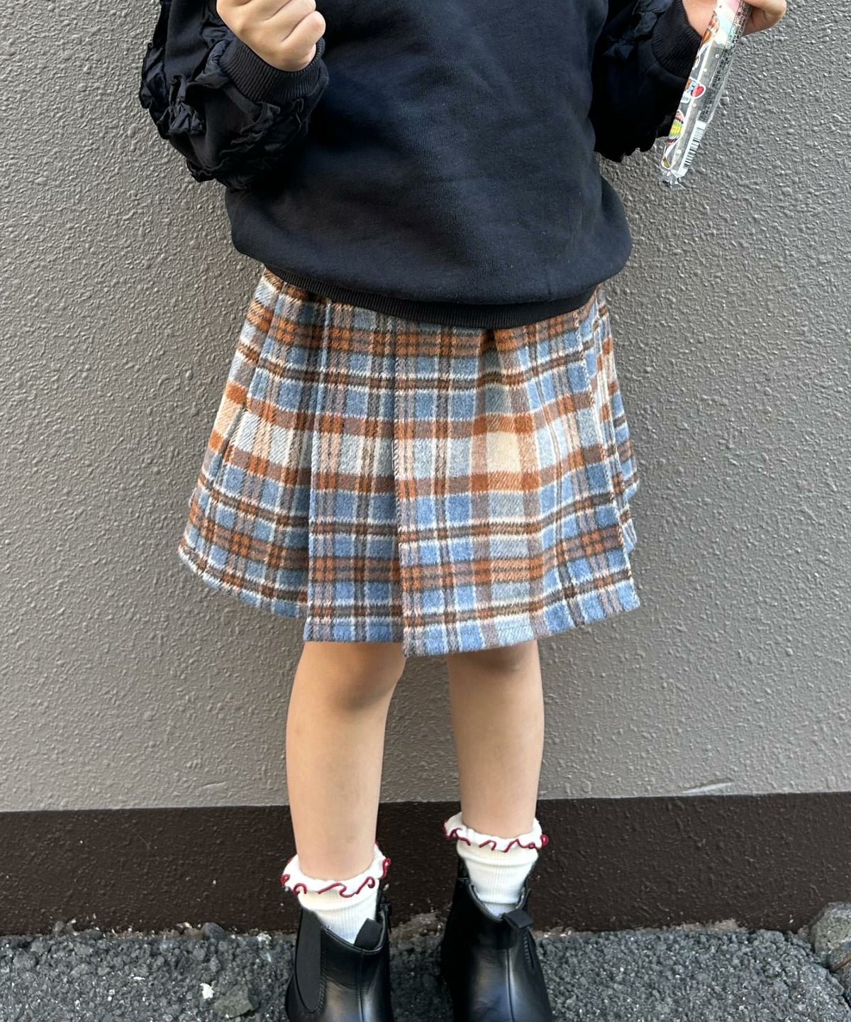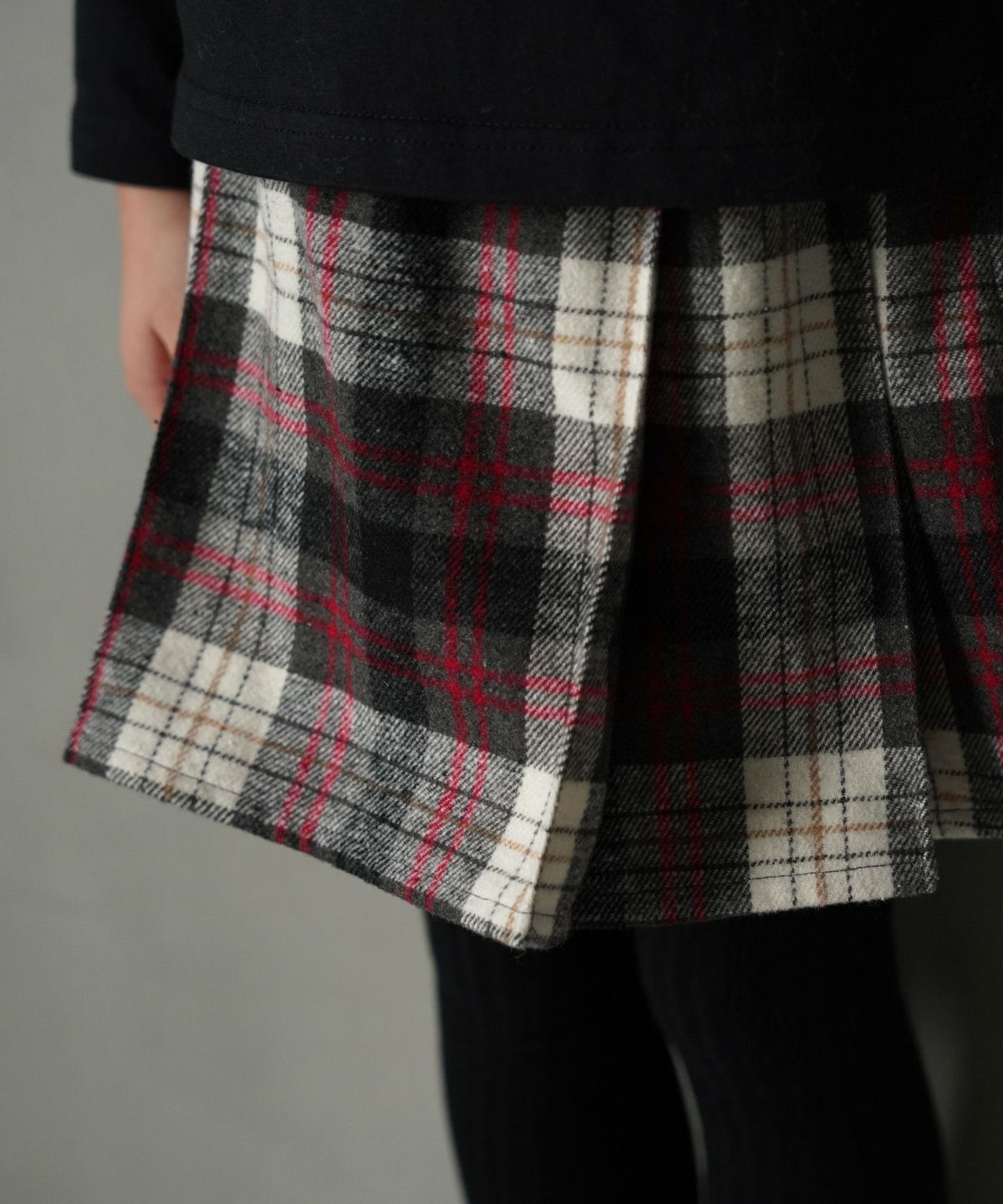 【セール】チェックとフェイクレザーのプリーツスカート■80~140cm