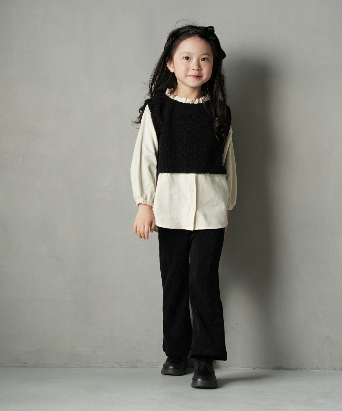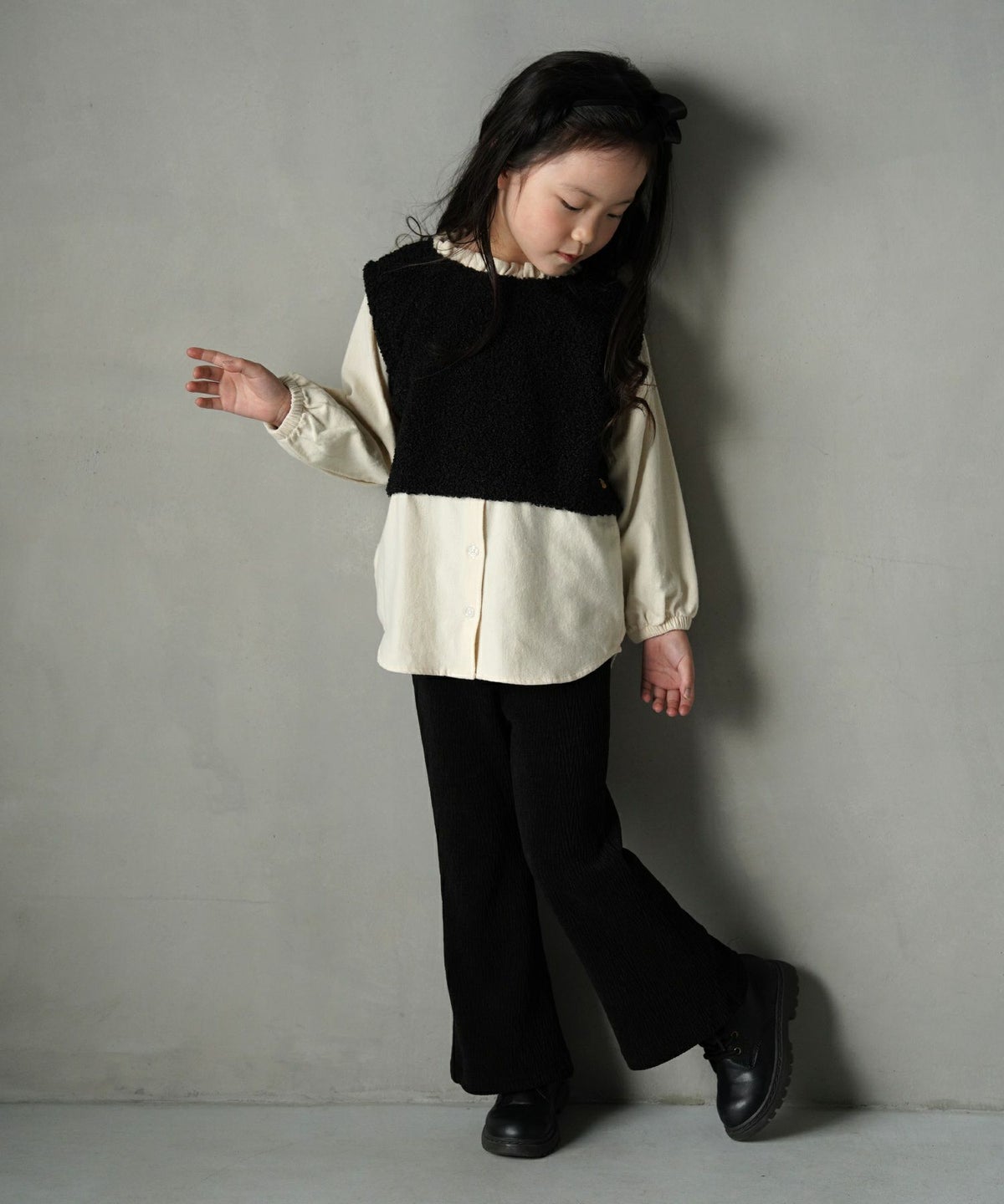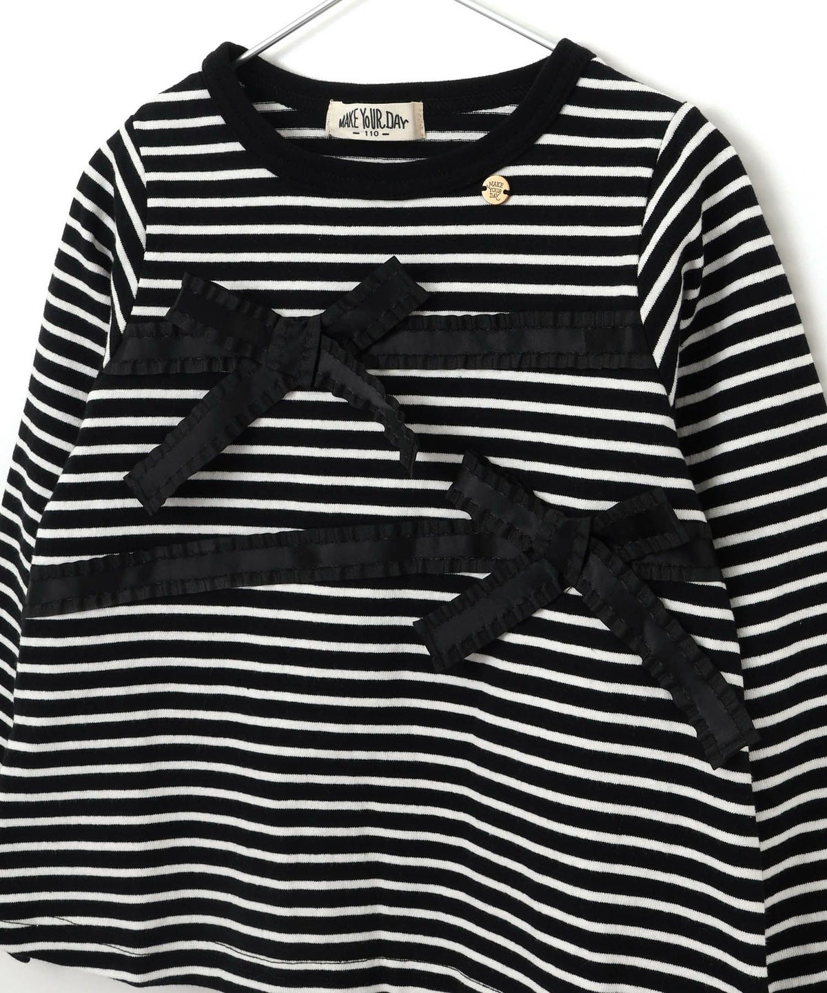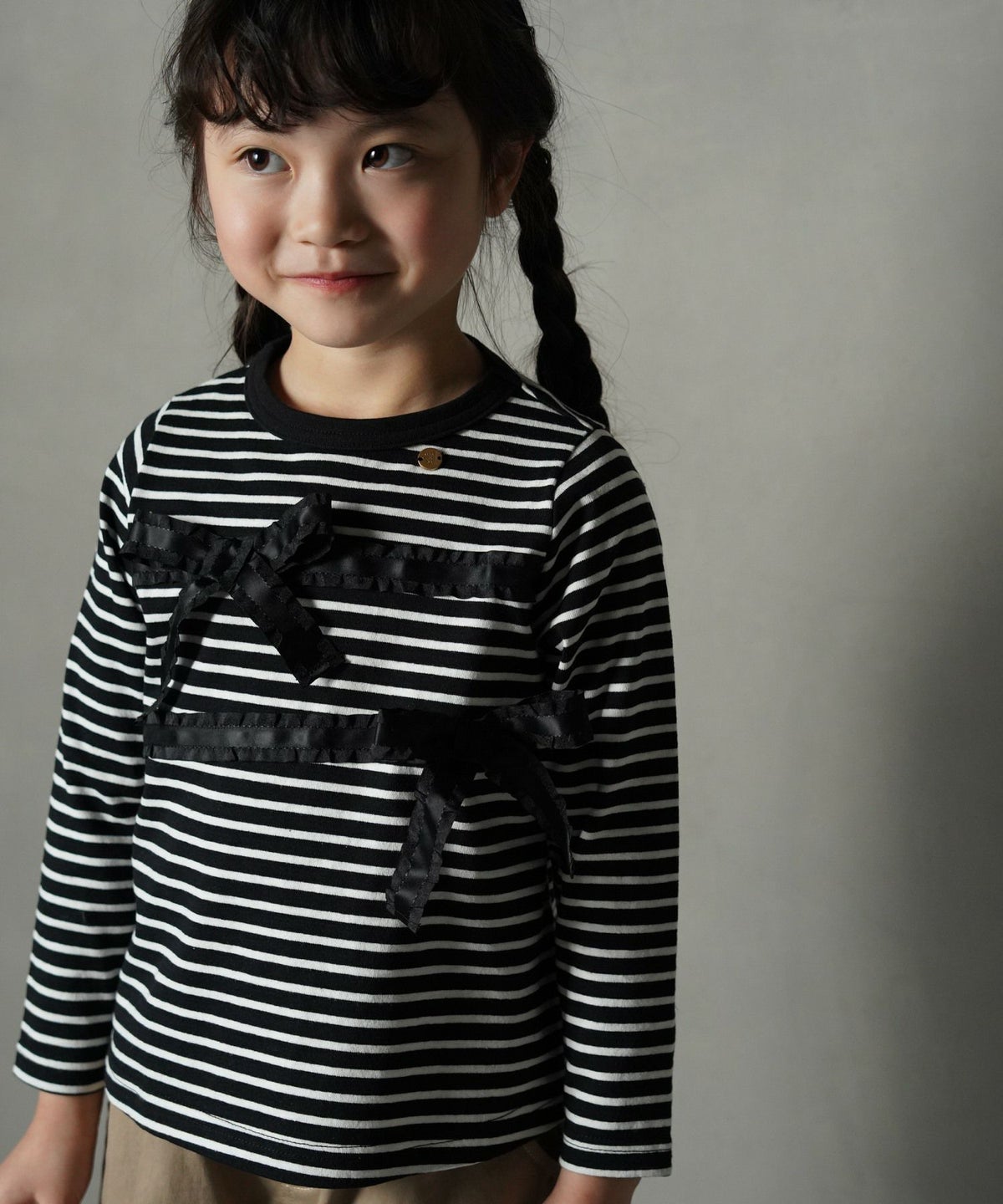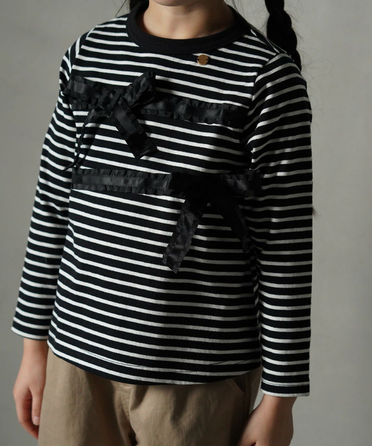【セール】リボン付きモノトーン長袖Tシャツ■80~140cm