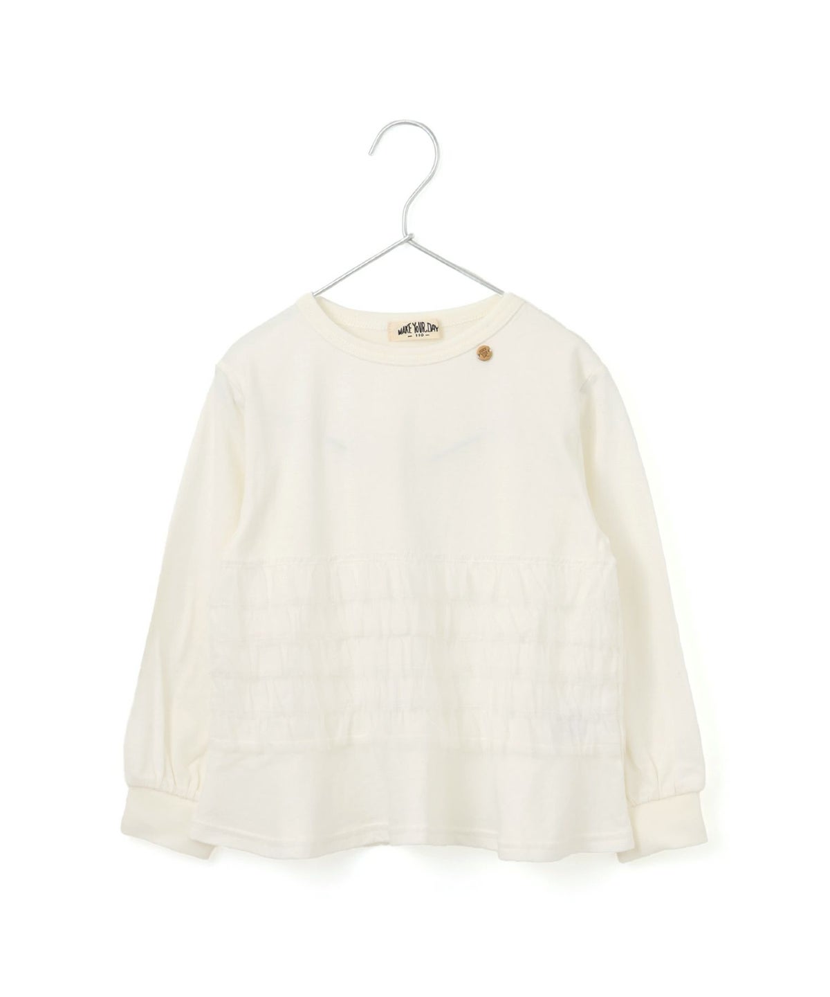 【セール】シャーリングパフスリーブ長袖Tシャツ■90~140cm
