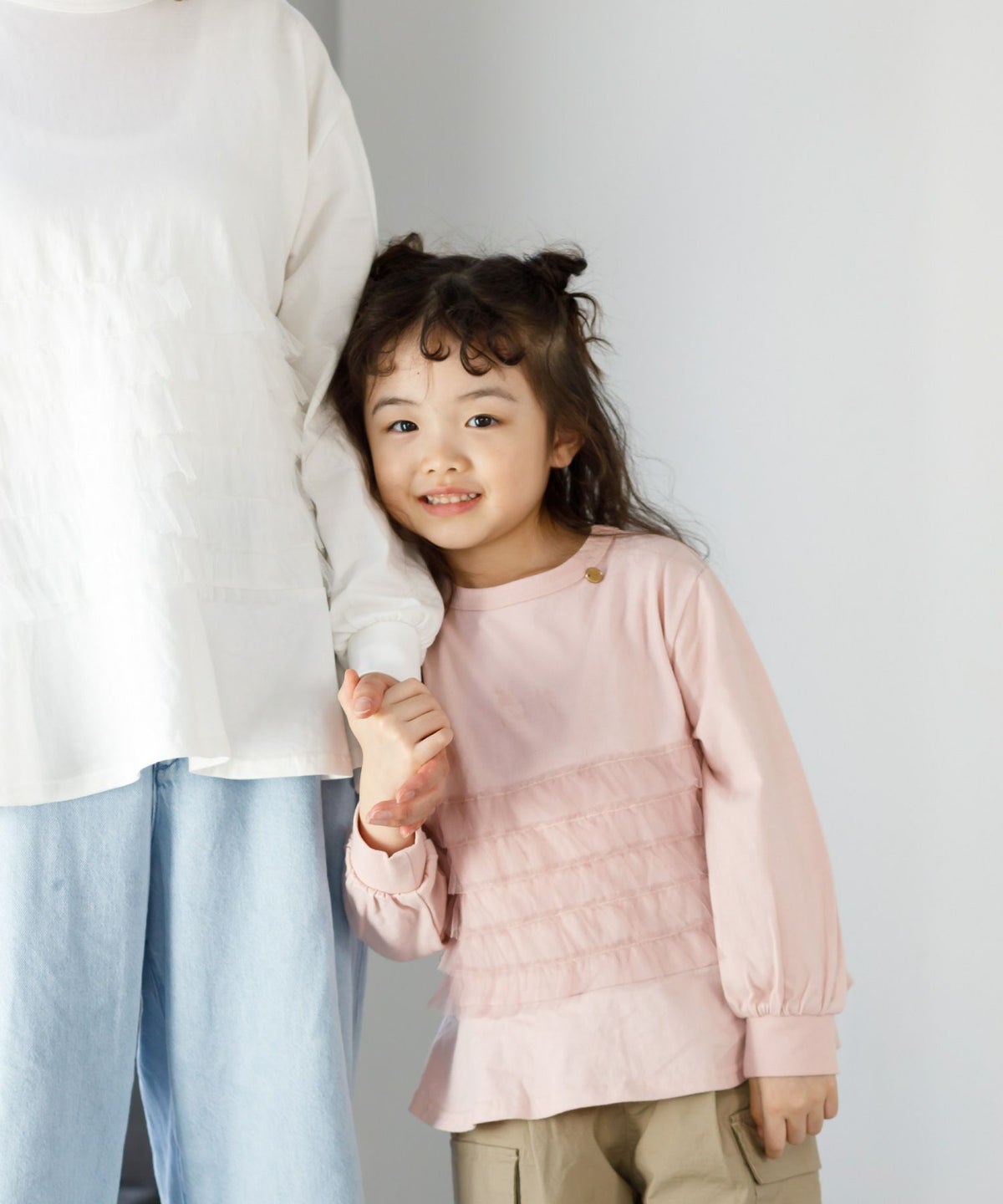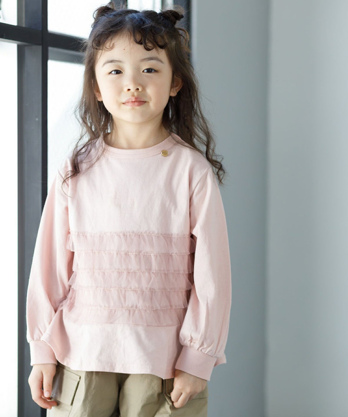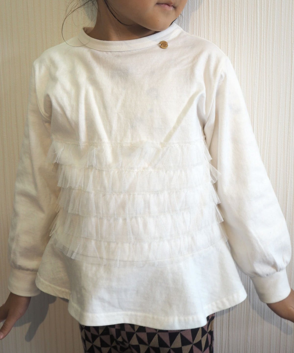 【セール】ママとおそろいチュールフリル長袖Tシャツ■80~140cm