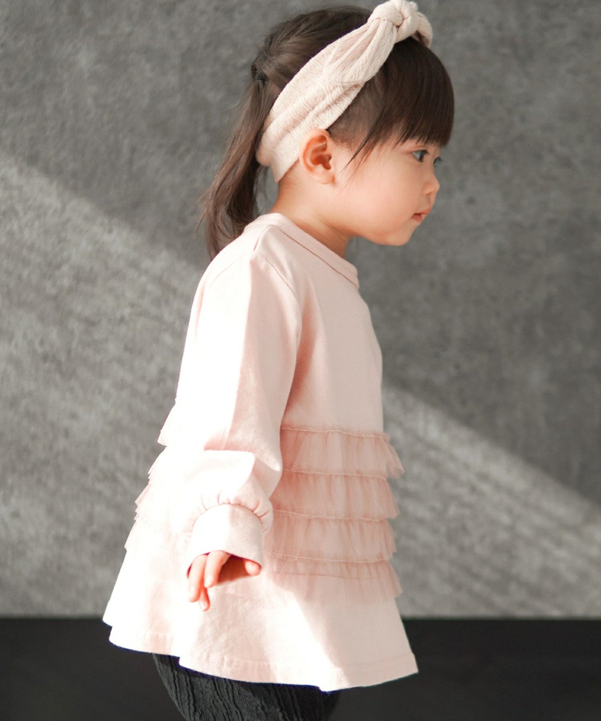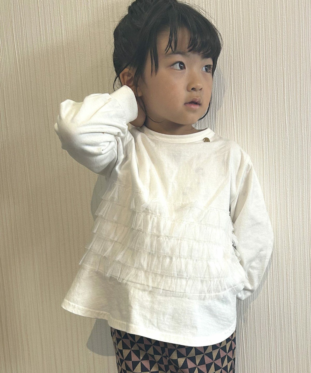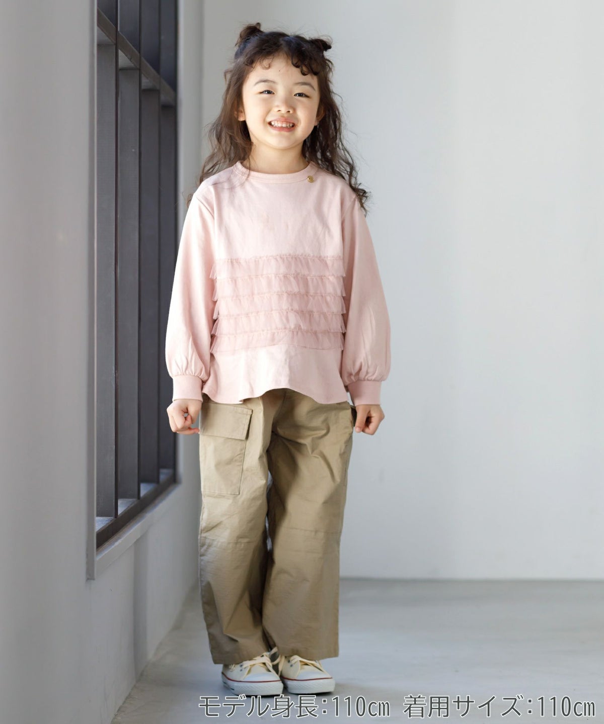 【セール】ママとおそろいチュールフリル長袖Tシャツ■80~140cm