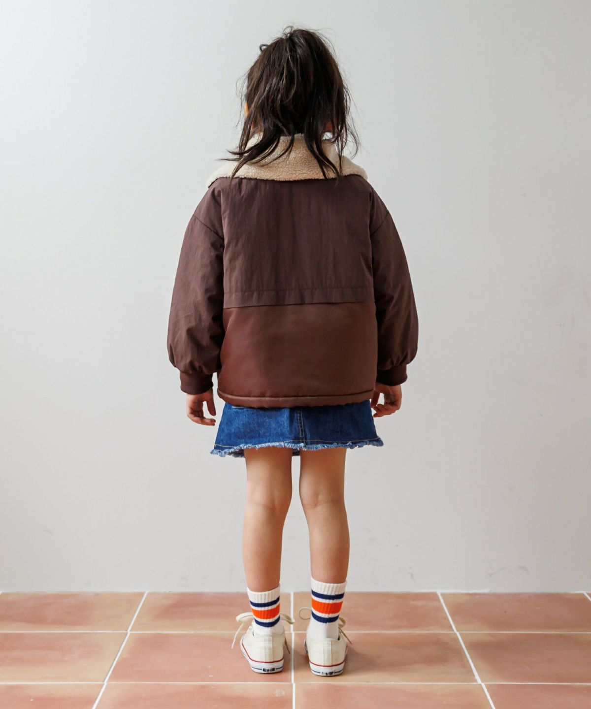 フェイクレザーとヘリンボーンのショートパンツ■80~140cm