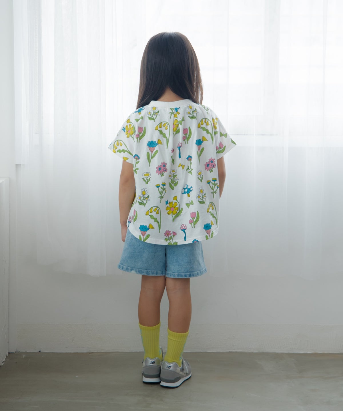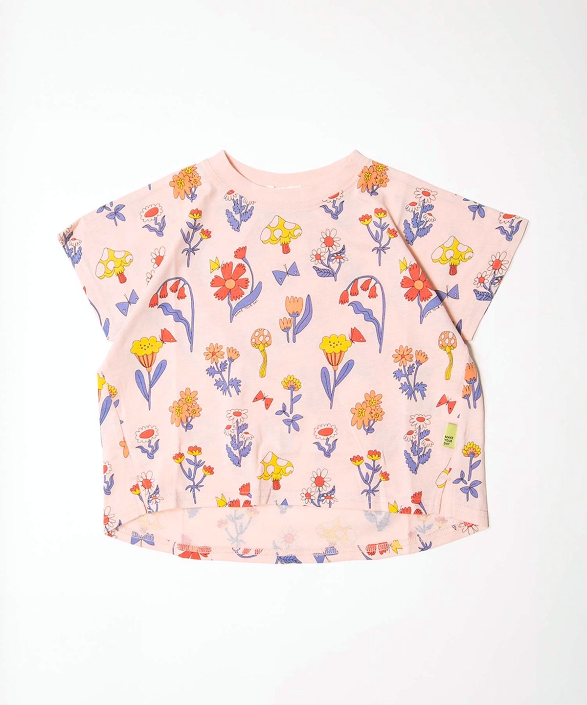 レトロフラワー総柄変形半袖Tシャツ■80~140cm
