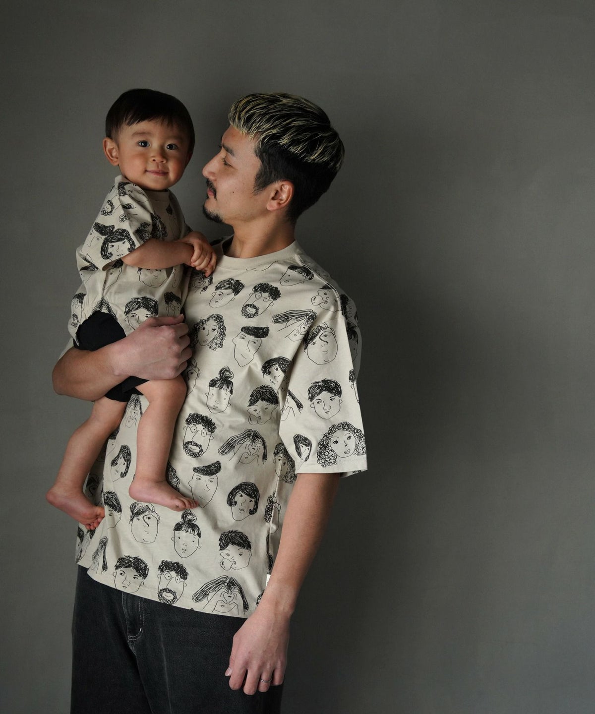 いろんな顔総柄半袖Tシャツ■パパサイズ
