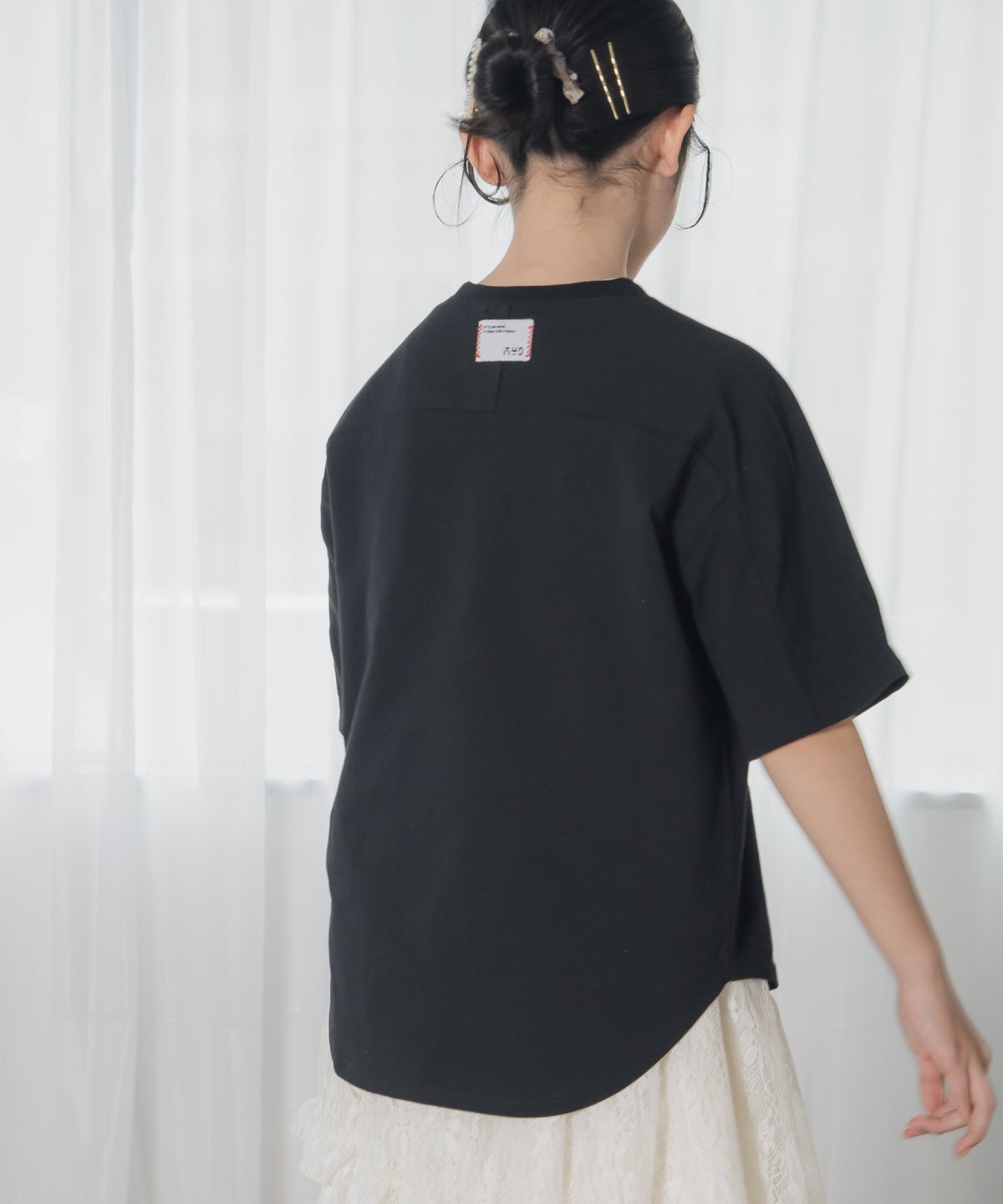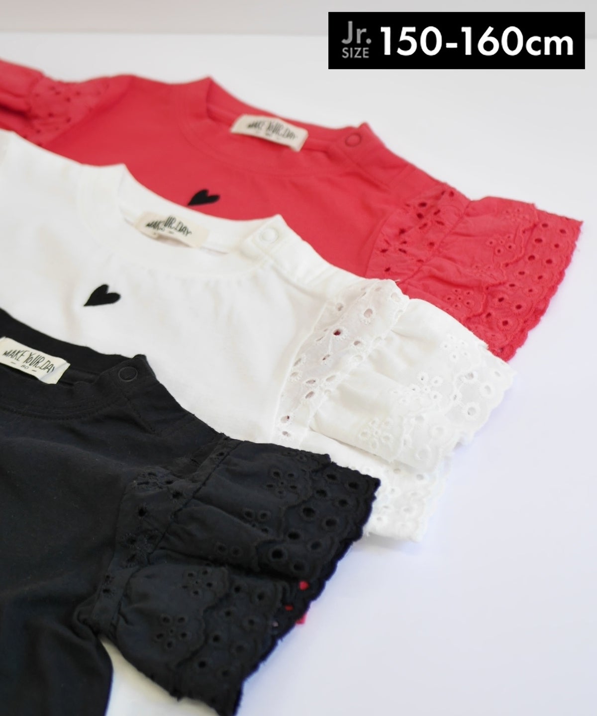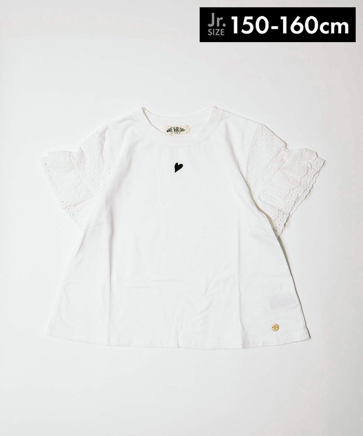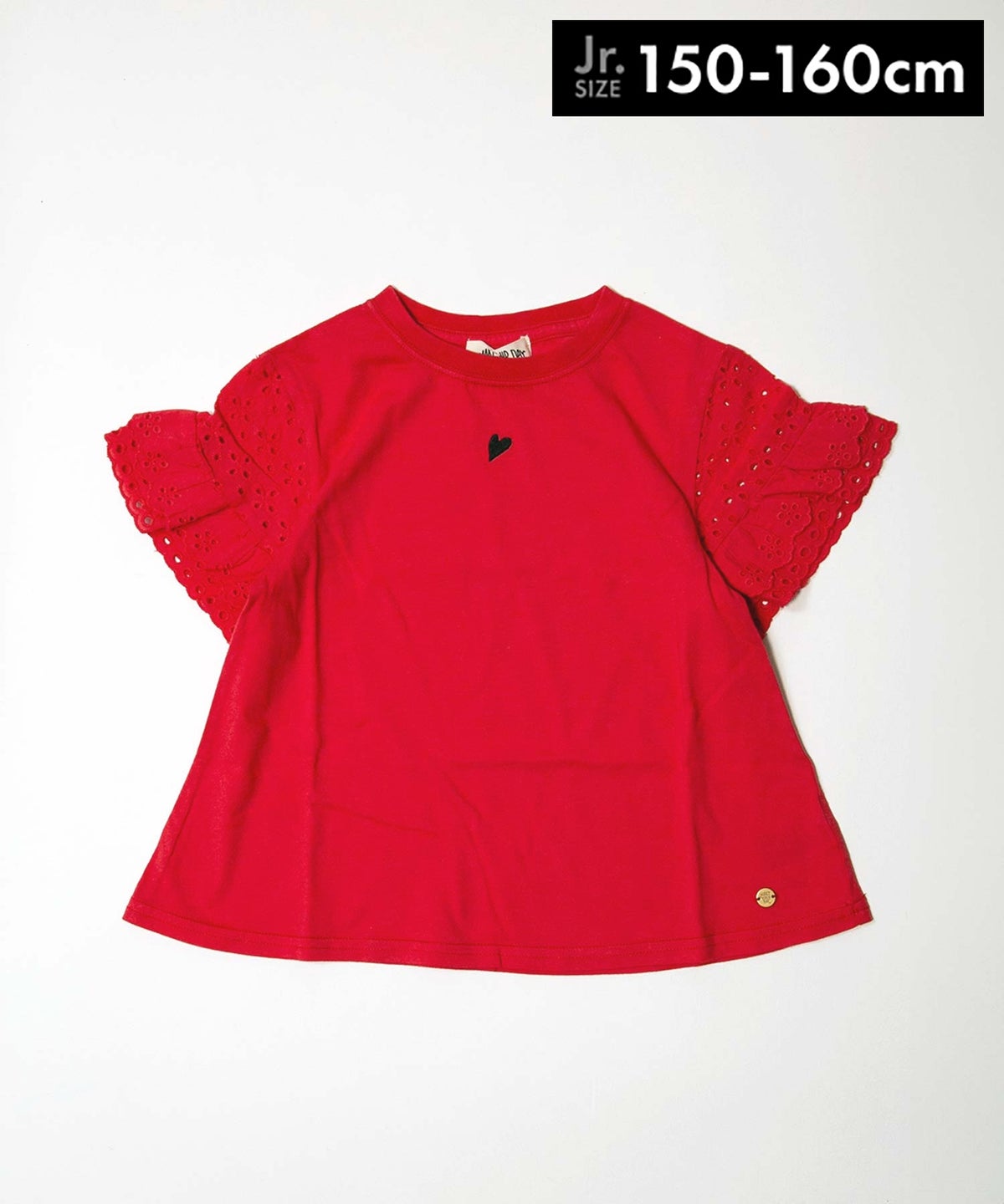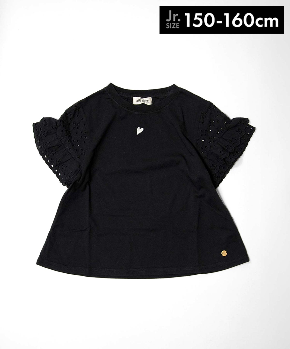 ハートアイコンフリル袖半袖Tシャツ■150.160cm