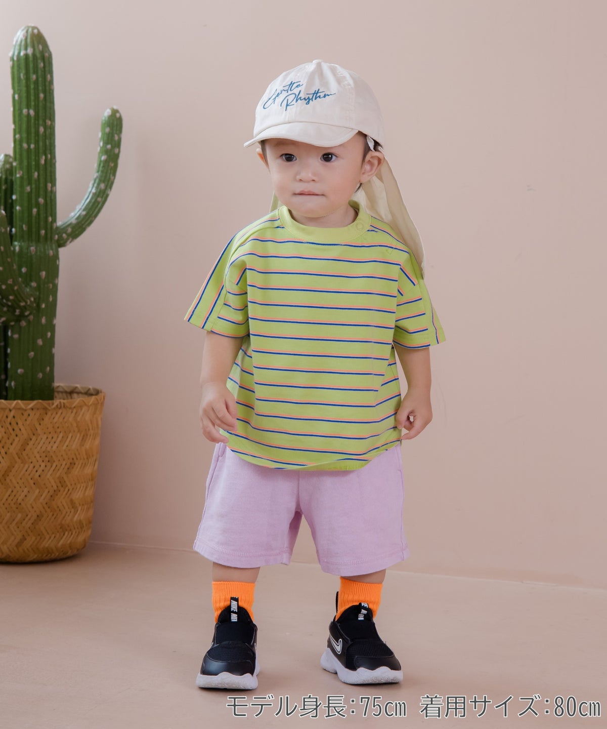 セットアップできるビンテージウォッシュ5分丈パンツ■80~140cm