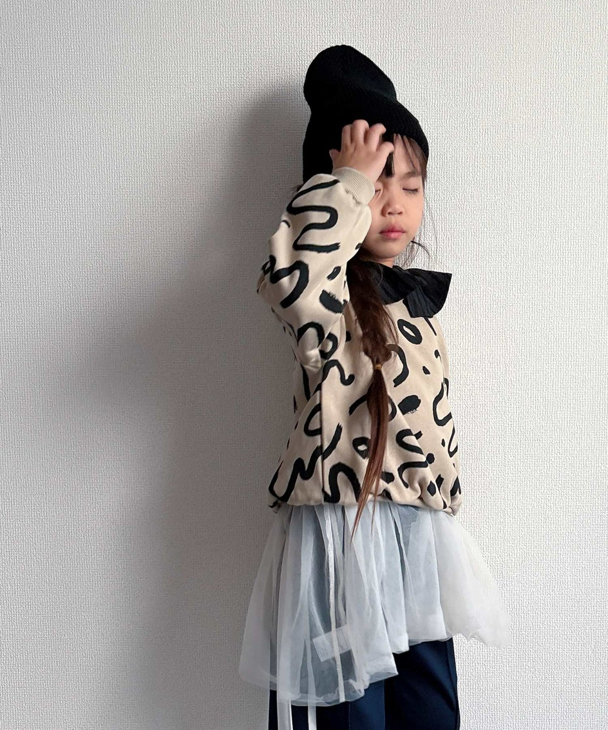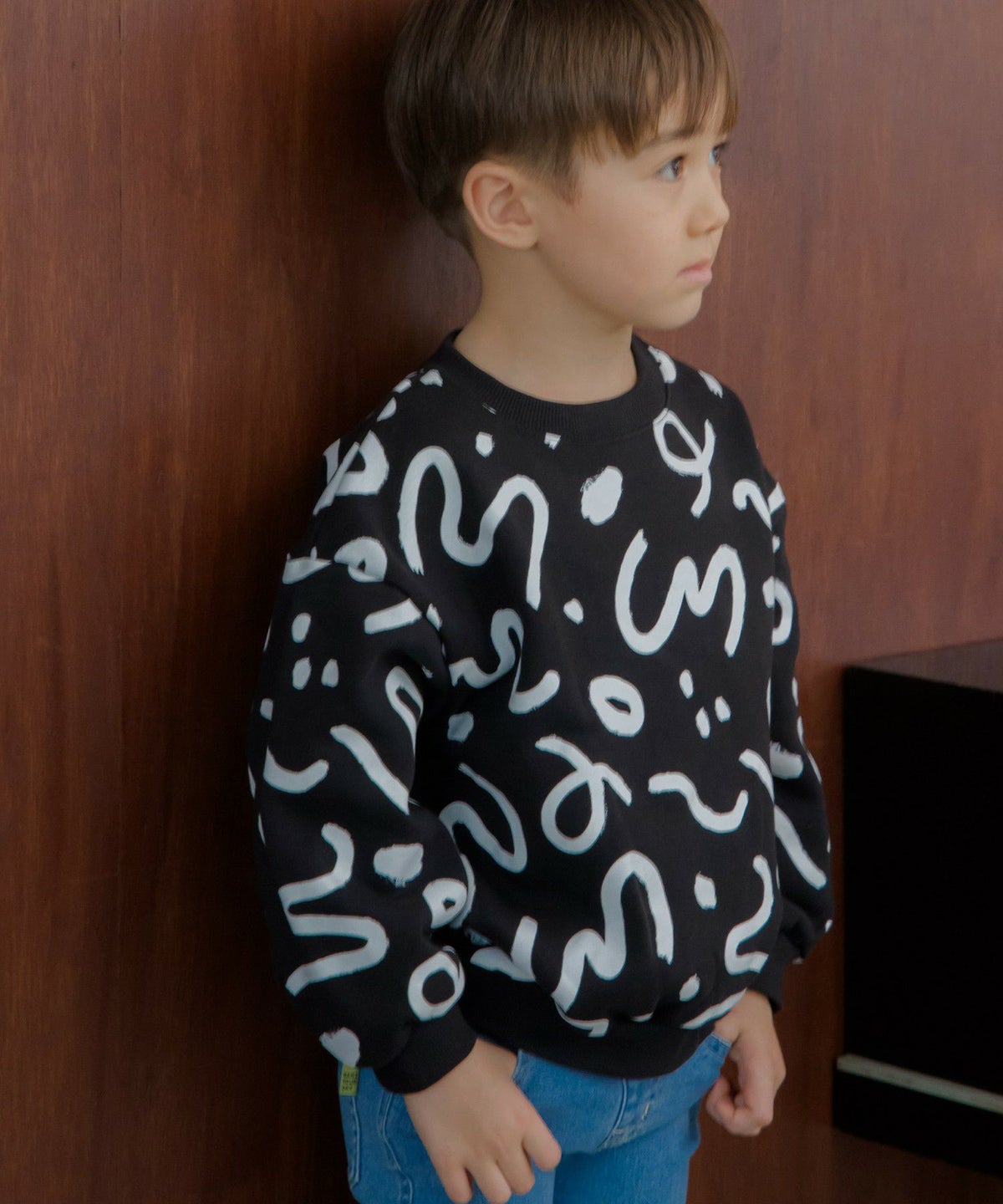抽象レイン柄変形長袖Tシャツ■80~140cm