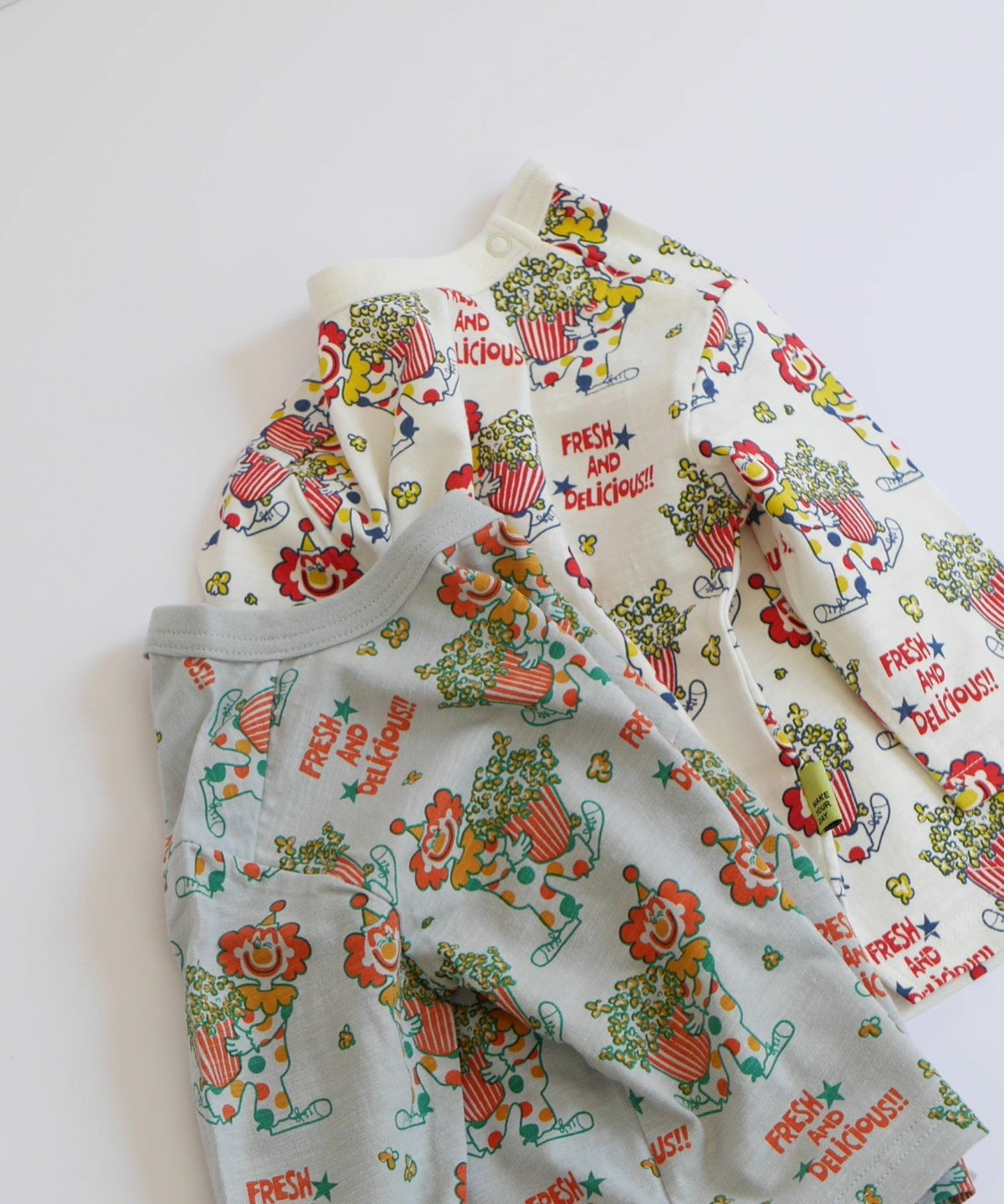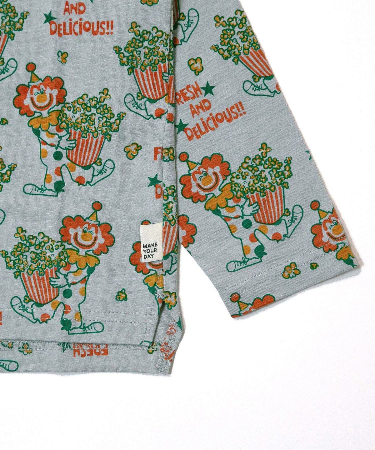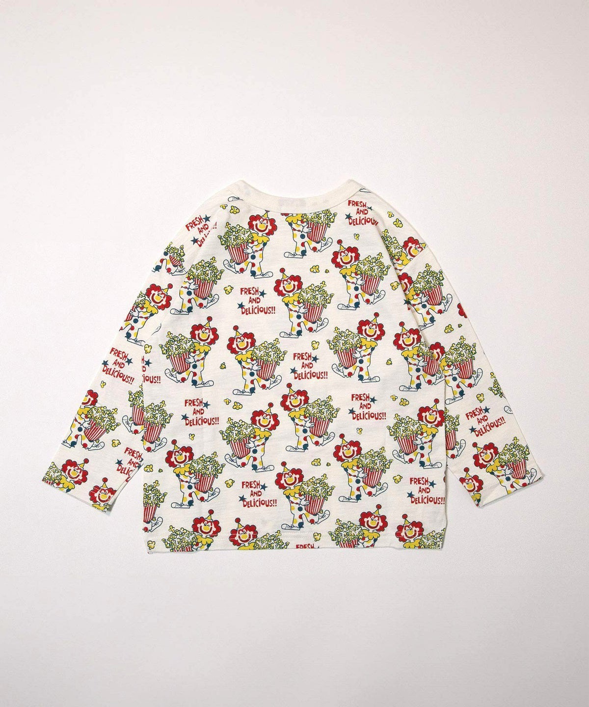 ピエロとポップコーン総柄長袖Tシャツ■80~140cm
