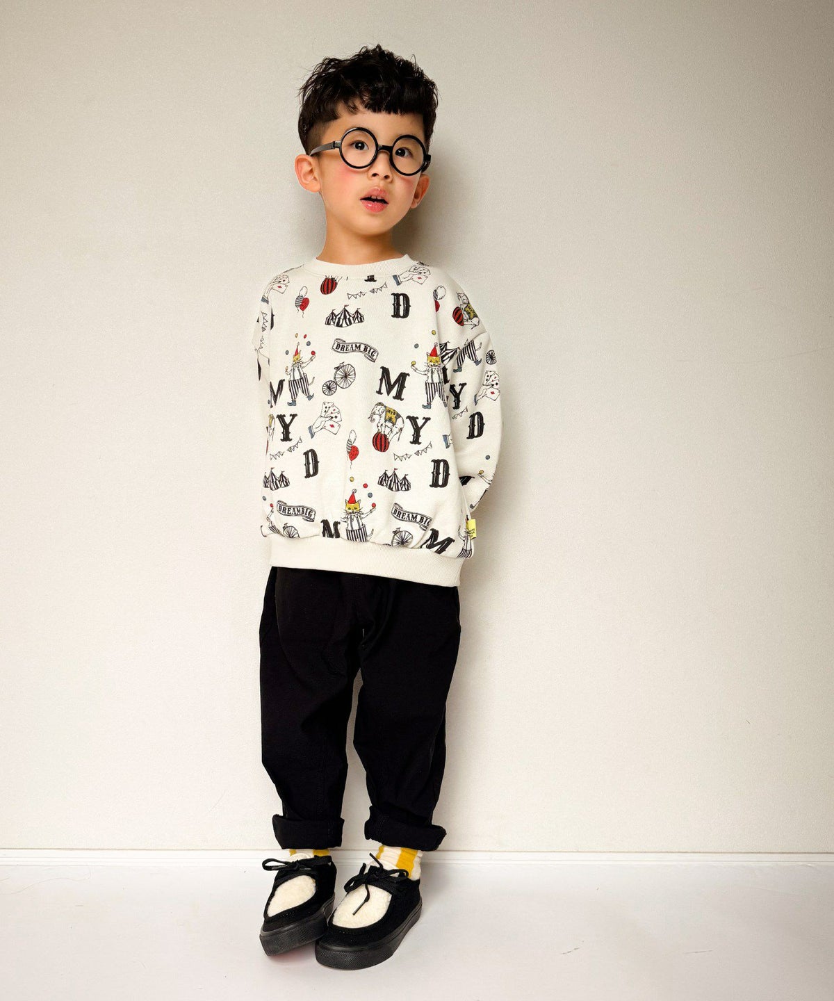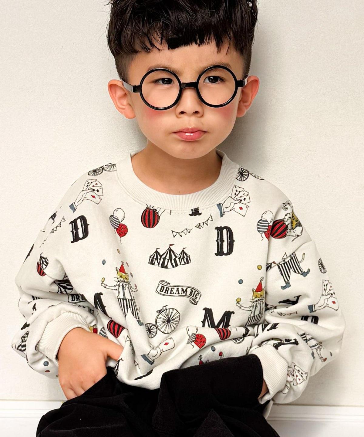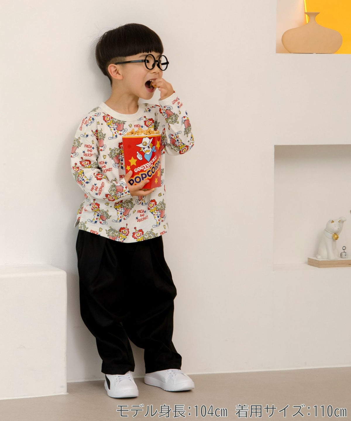 ピエロとポップコーン総柄長袖Tシャツ■80~140cm
