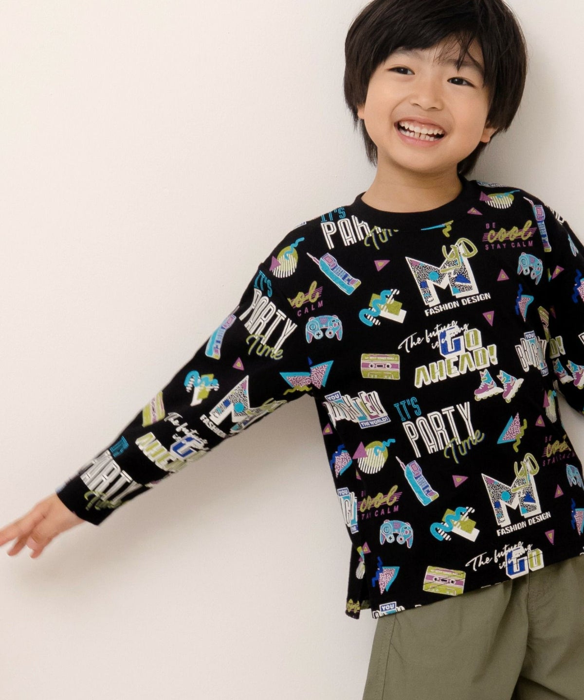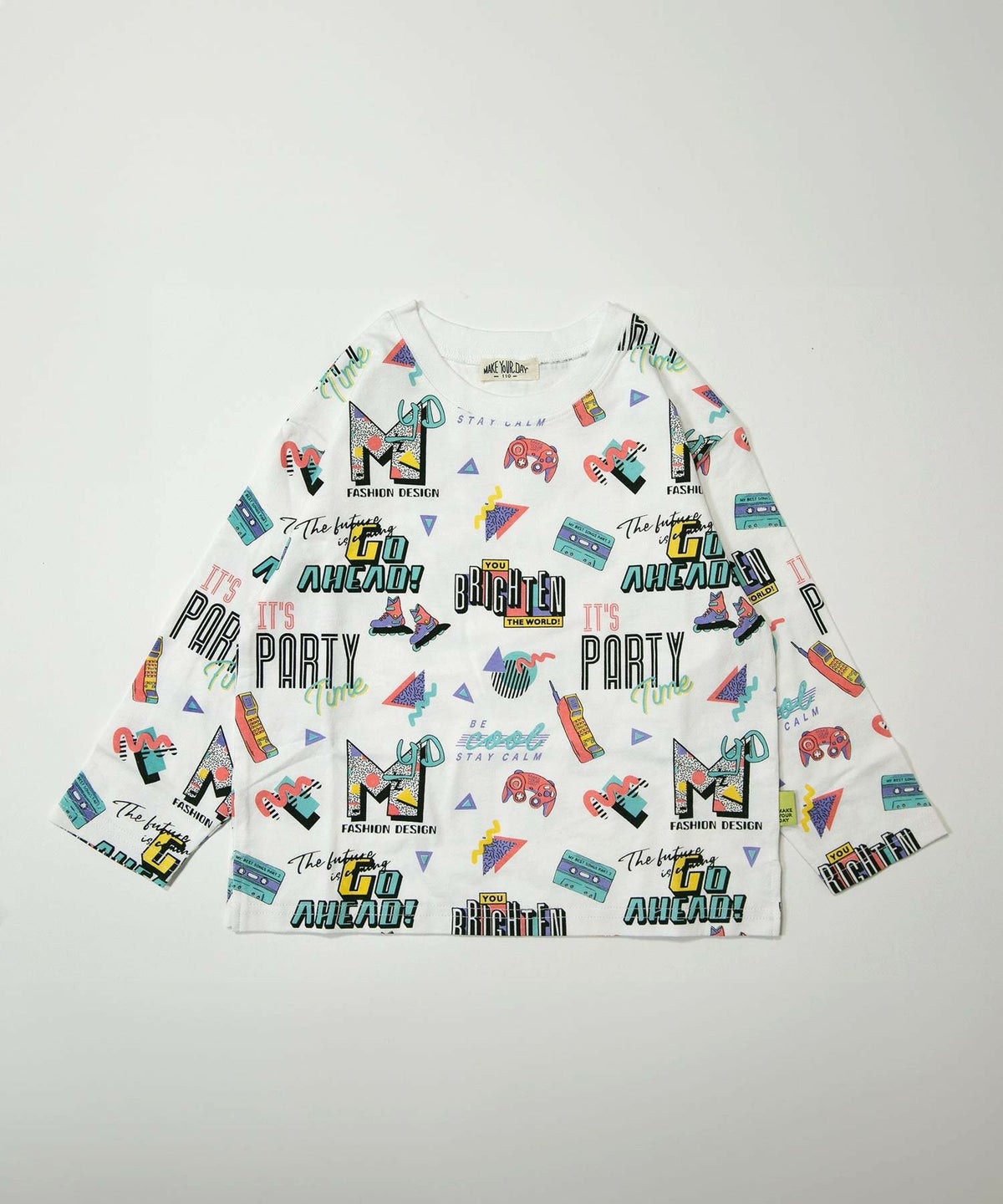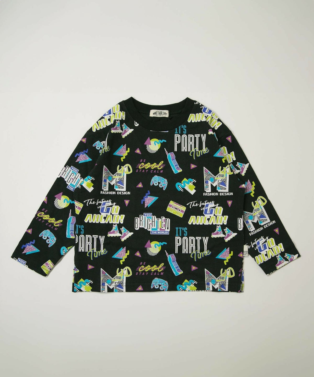 レトロなネオンサイン総柄長袖Tシャツ■80~140cm