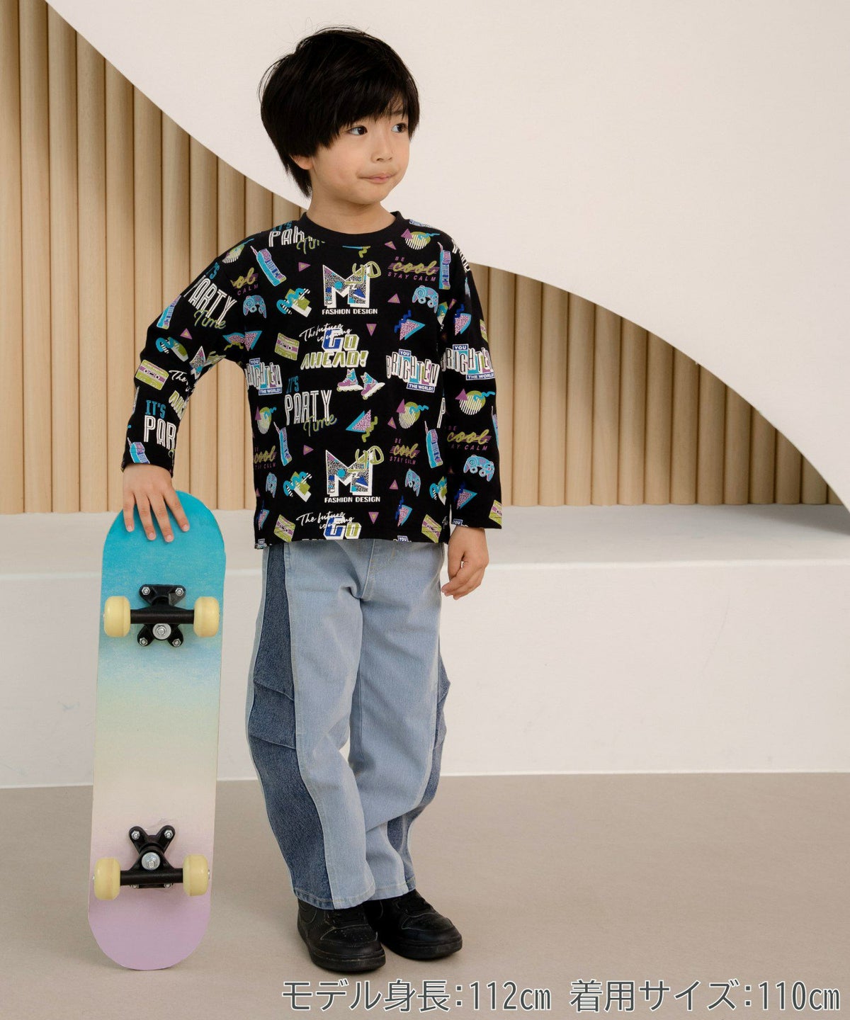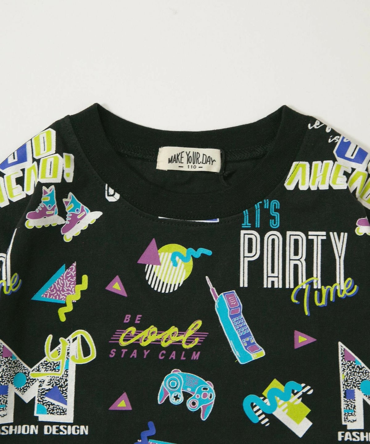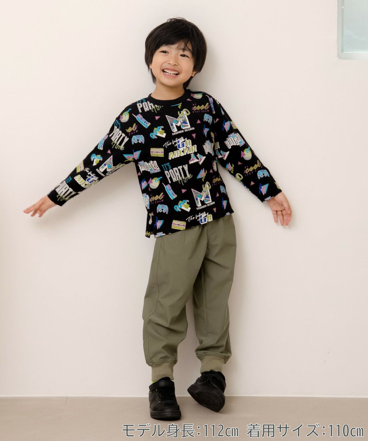 レトロなネオンサイン総柄長袖Tシャツ■80~140cm