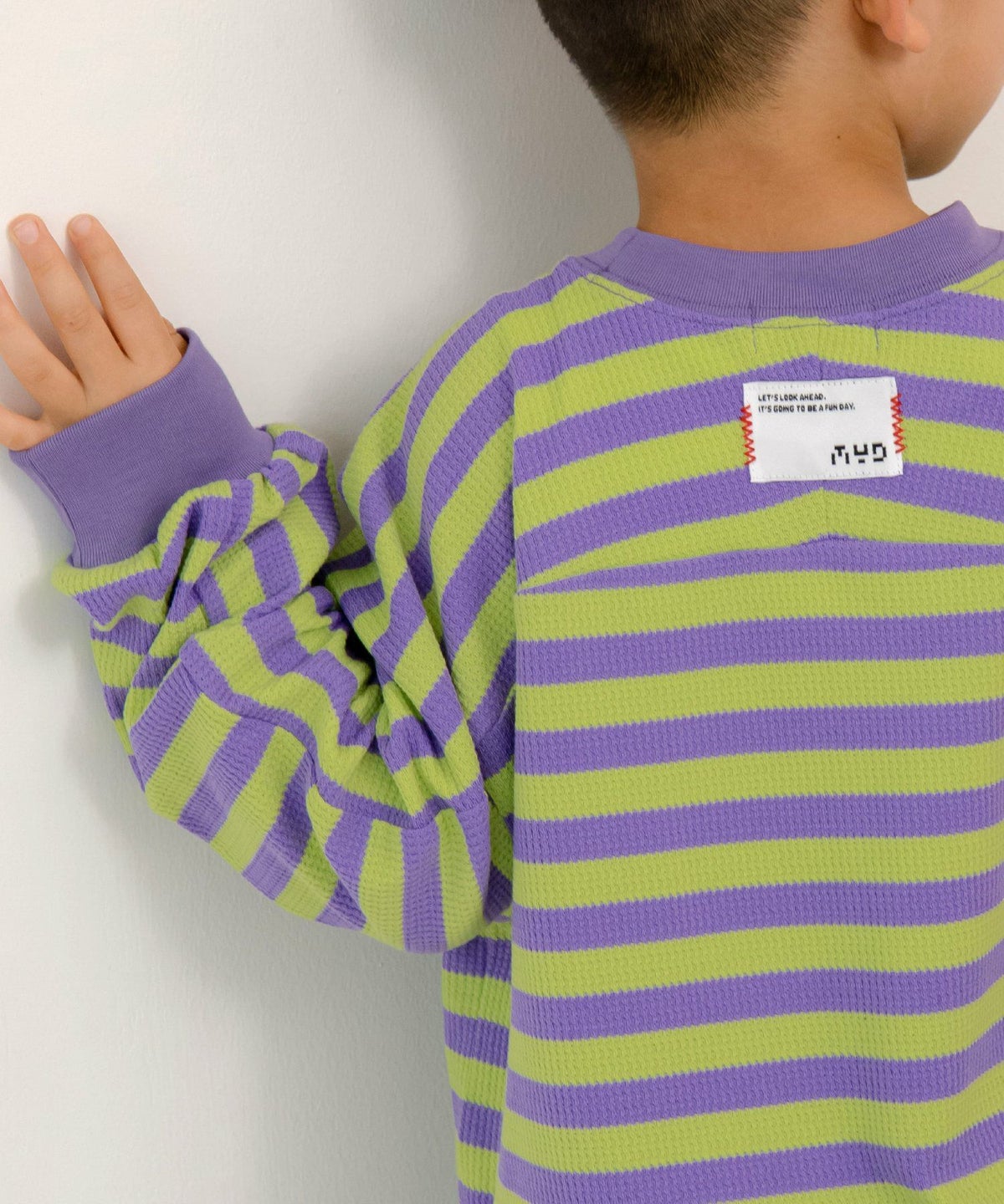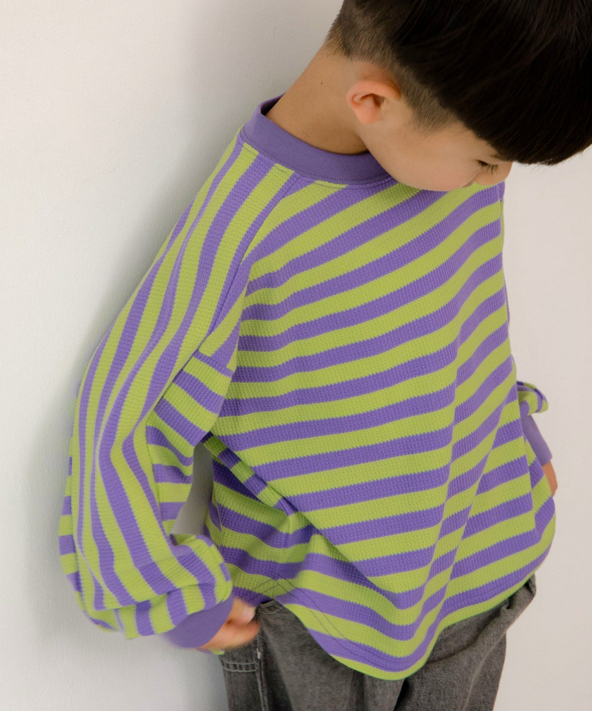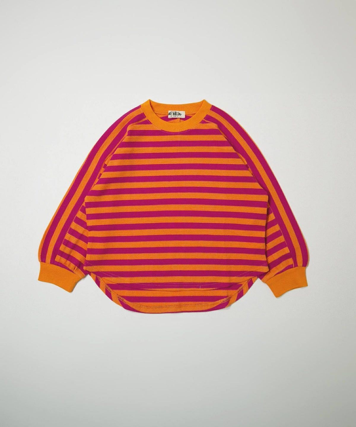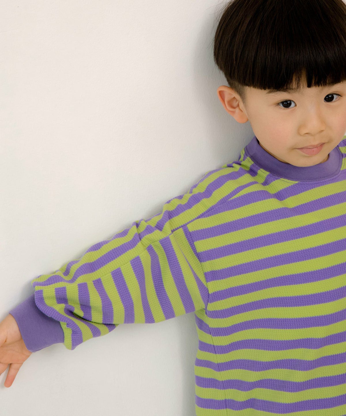 無地とボーダー裾ラウンドサーマル長袖Tシャツ■80~140cm