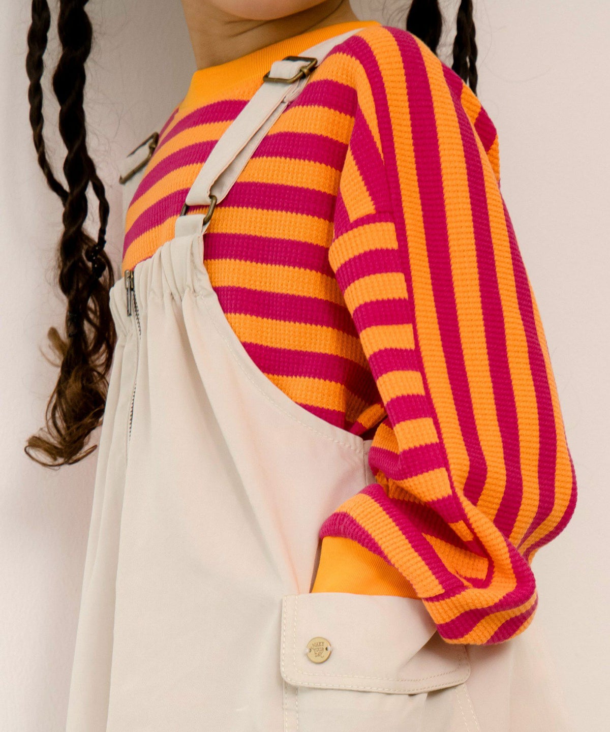 ママとおそろいチェックとストライプのドルマンシャツ■150.160cm