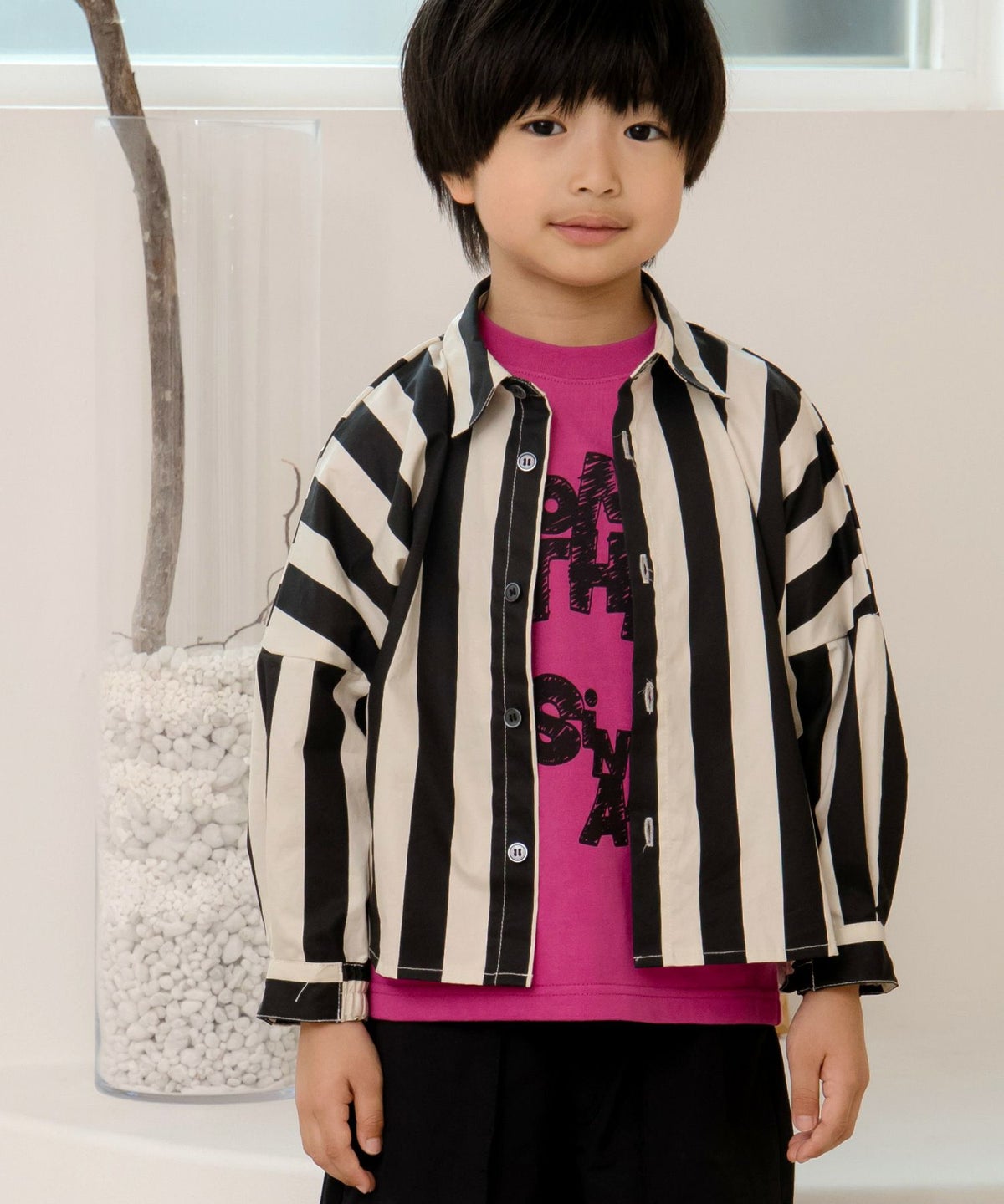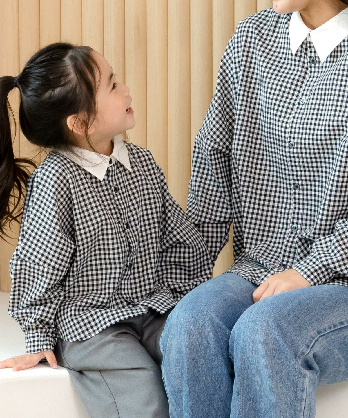 ママとおそろいチェックとストライプのドルマンシャツ■80~140cm